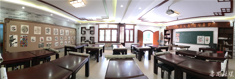 为了更好进行中国画特色项目发展,员岗剑父小学特意设置了拾香书画舍专用室场、书画展厅(承启阁)、集美堂。在整体环境上增加了校园的传统文化艺术氛围。在拾香书画舍专用室中,学校配备了空调,宽阔的大桌来方便孩子们画画。在书画展厅内,陈列着多年来学生的优秀画作,何倩瑜介绍,这些画作陈列出来之后,能够感受到孩子们被激励了,通过在书画展厅展出学生画作,也增强了孩子们在画中国画道路上的信心。
