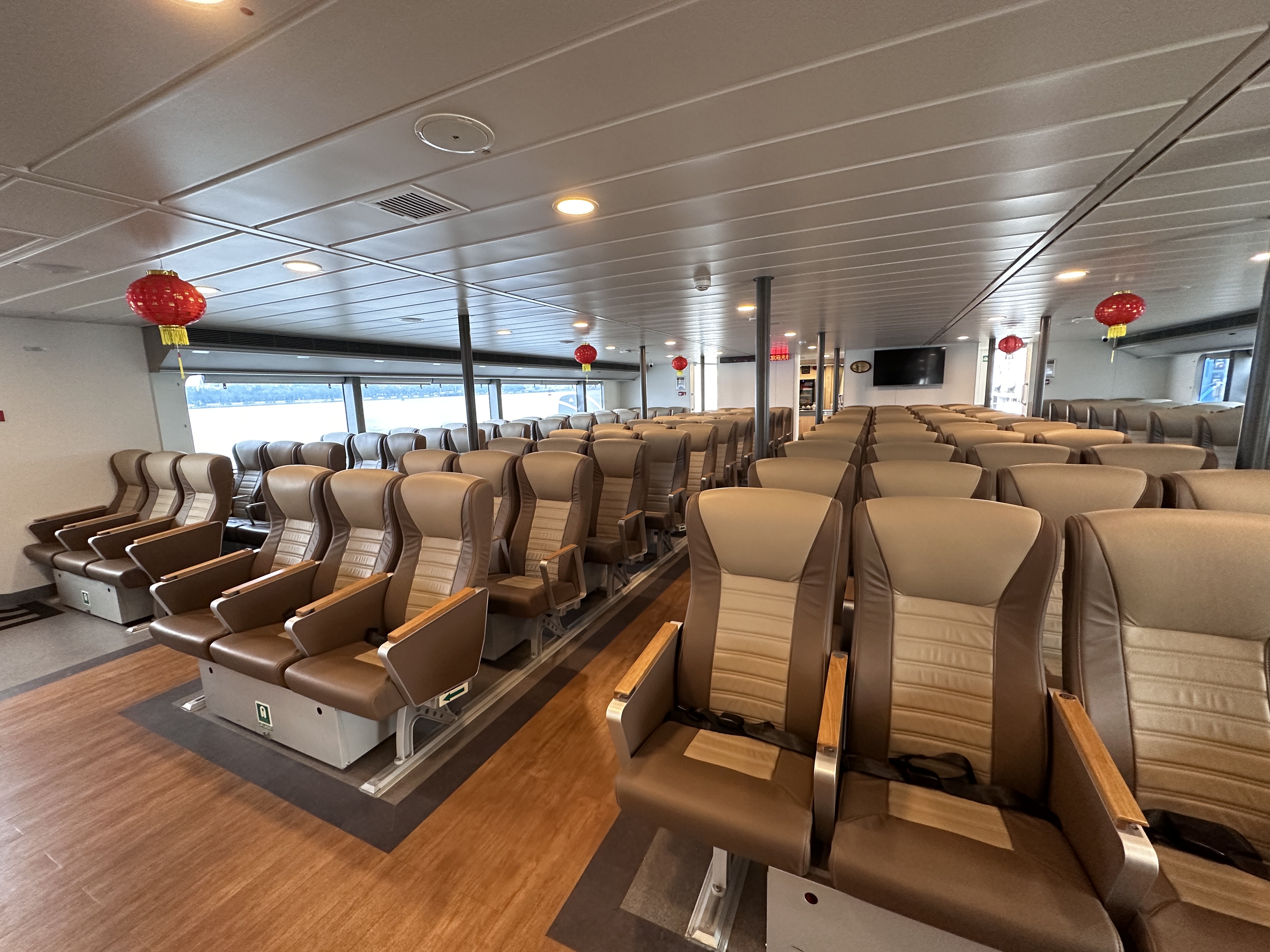 “目前我们一天有两个往返航班,后续我们将视通航情况,逐渐加密航线。”据广东省港航集团相关负责人介绍,投入的高速碳纤维客船全船有旅客座位260个,包括头等舱60个,普通舱200个。未来,琶洲港澳客运码头还将增开澳门航线,进一步填补广州中心城区到港澳水上高速客运航线的空白。