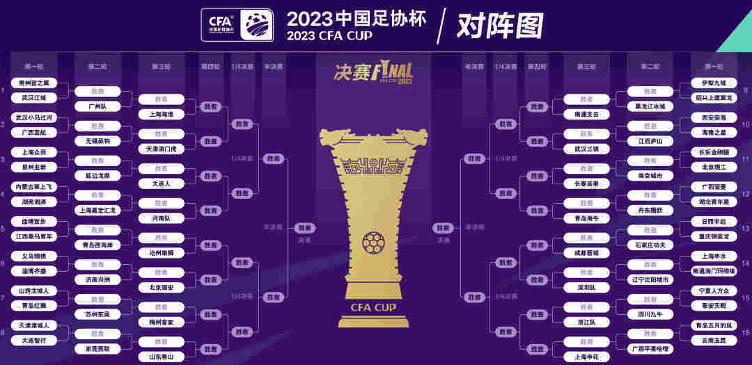 2023中国足协杯各参赛队对阵图。中国足协供图