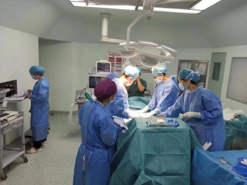 手术台上,医生们片刻不敢松懈,分秒必争抢救。20分钟后成功取出胎儿,这个 6 斤多重的小家伙哭声响亮,让所有医护松了一口气。