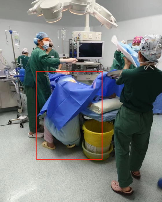 “如果不用手托举起胎头,脐带血完全阻断,大约3-5分钟就可能造成胎儿窒息,甚至宫内死亡。”邱丽丹回忆,她一直单膝跪着保持托举的姿势。值班医生吴日松报告二线后通知紧急剖宫产,手术室、麻醉科、新生儿科等多科室联动协作,妇科蔡烁卿医生闻讯也快速到现场支援。