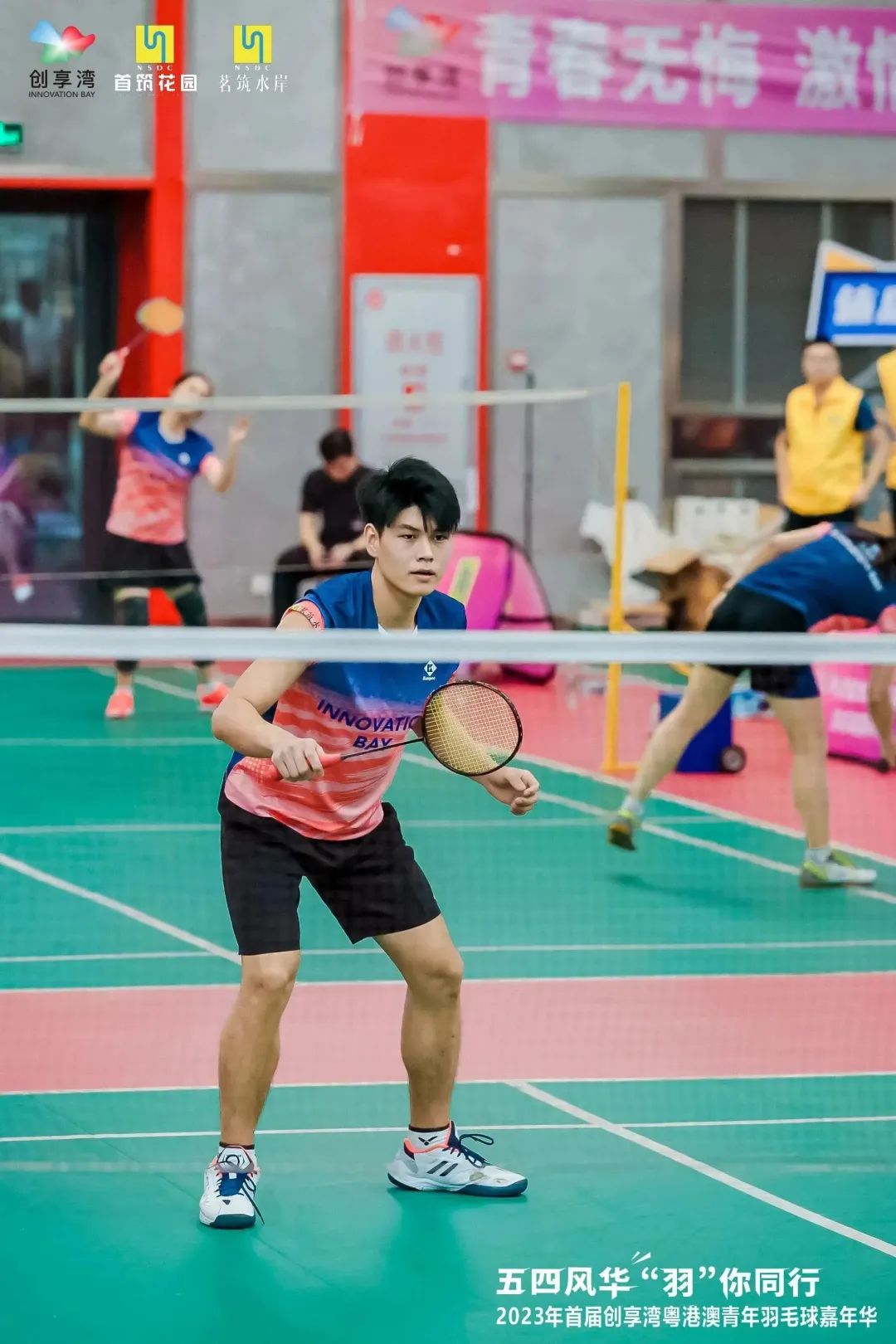 5月4日下午,「『五四』風華,『羽』你同行」——2023年首屆創享灣粵港澳青年羽毛球嘉年華活動在廣州市南沙區明珠灣體育館舉辦。