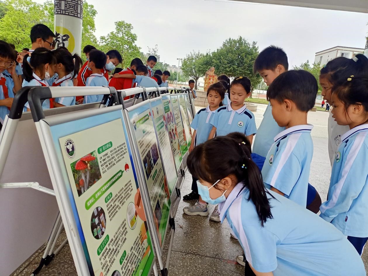 沙贝小学学生观看禁毒宣传展板。通讯员供图