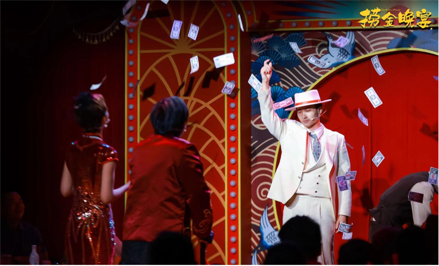 据了解,《捞金晚宴》是一部“餐饮+戏剧+互动”的沉浸式戏剧,改变传统观剧模式的颠覆性戏剧感受,给观众带来全新的爆笑体验。在这场晚宴中,观众不仅仅是观众,还是参与者。可能与演员产生的一个眼神接触,就会被cue到,任何一位列席嘉宾都有可能成为关键人物扭转乾坤,红毯仪式、烛光晚餐、魔术表演,演员超近距离地随机开启互动,边吃边喝边玩,给观众带来独特的互动体验。