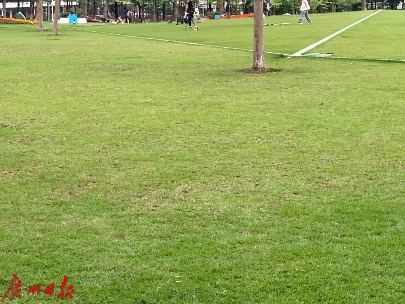 记者之后来到二沙岛艺术公园,这里原本霸占绿地的“无人”帐篷也不见了踪影。草地情况与宏城公园相若,帐篷被拆除后,帐篷所处的草地,生长似乎因为长期被碾压而受到制约,草叶明显较周围的草地稀疏,有的已经光秃,裸露出泥土。