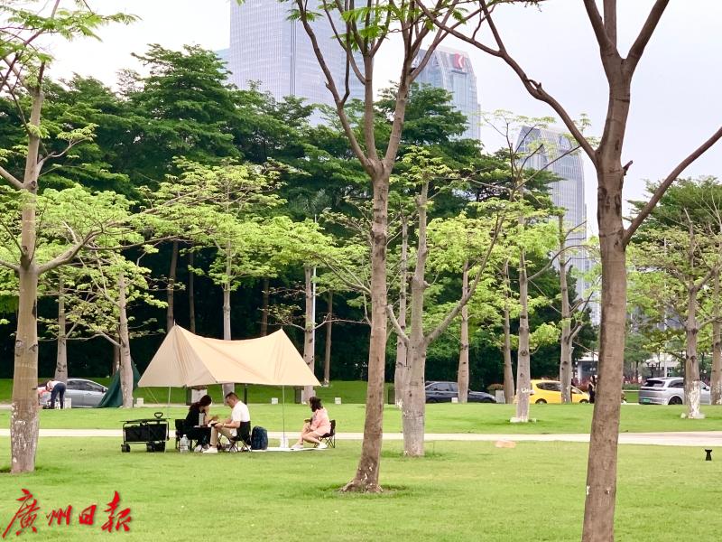 5月8日,市民在二沙岛艺术公园草坪露营野餐,自在快乐。