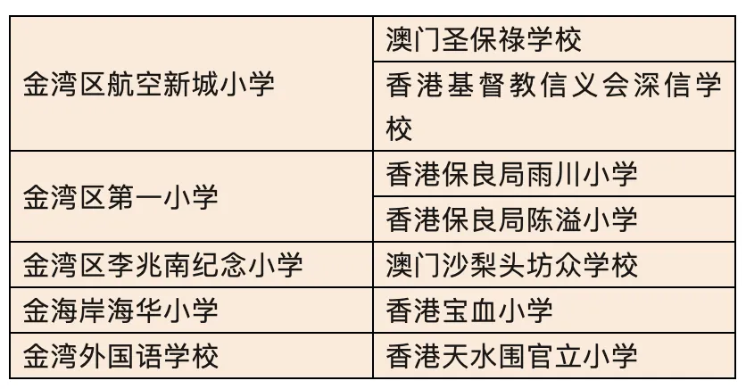 一直以來金灣區深入貫徹落實《粵港澳大灣區發展規劃綱要》持續推動落實珠港澳姊妹學校計劃,截至目前金灣區共有5所學校與港澳7所學校締結姊妹校。