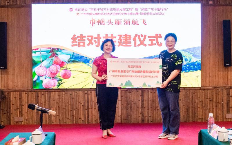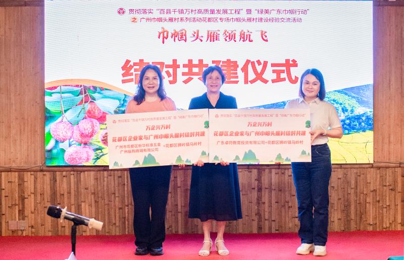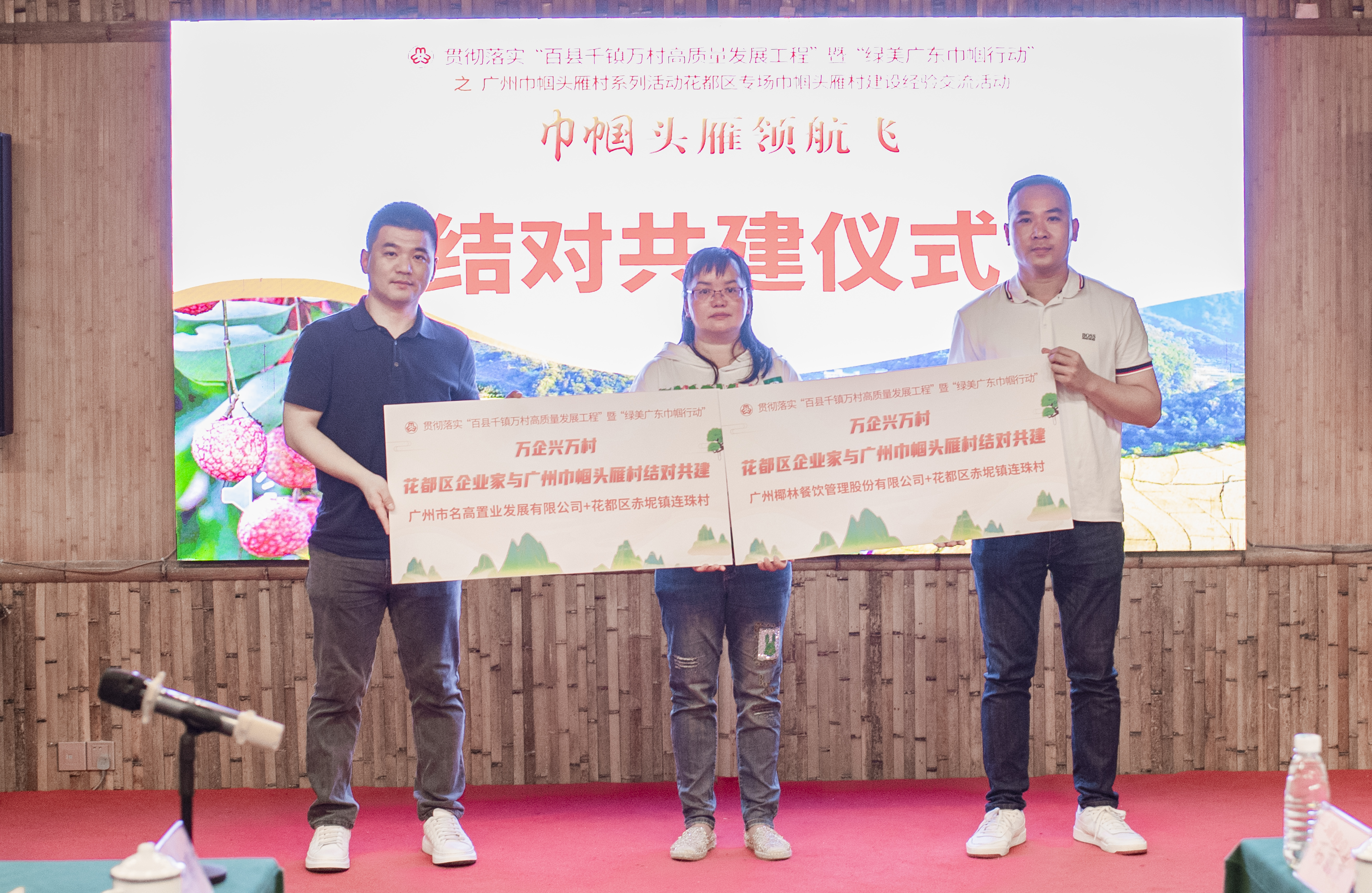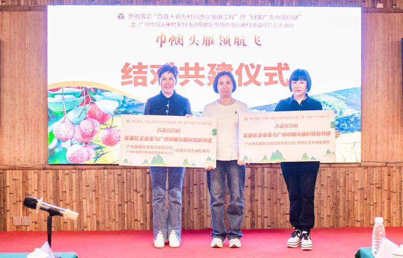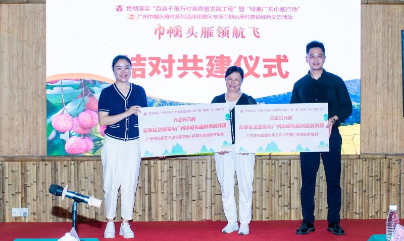 来自广州市、花都区的企业代表与花都区第一批巾帼头雁村达成结对共建意向。据了解,此次结对共建积极响应“万企兴万村”行动和“百县千镇万村高质量发展工程”号召,共有15家企业与7个头雁村达成结对共建。接下来,双方将以乡村振兴为主线,开展全方位、多领域、深层次的村企合作,促进巾帼头雁村的集体经济和乡村治理共同发展。