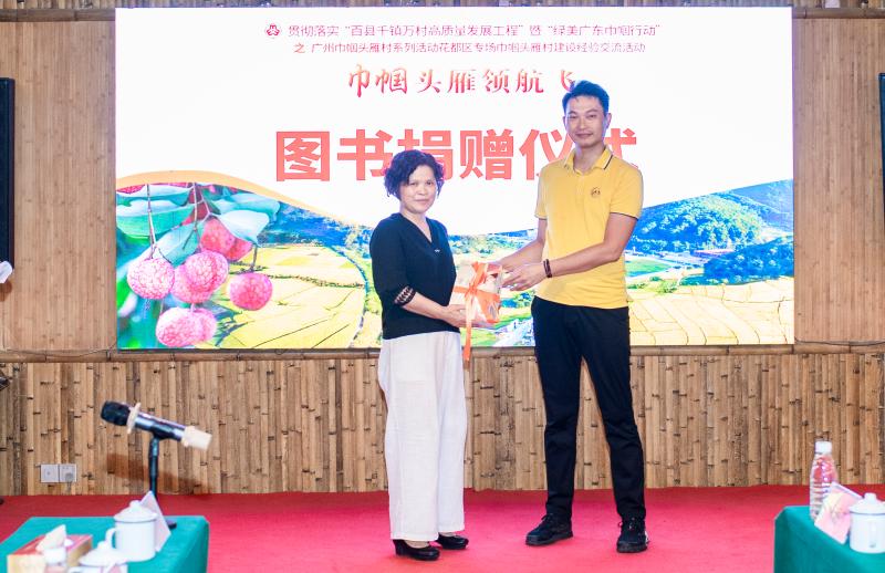 此外,现场还举行了一场特别的捐赠仪式。花都企业琼香饼家向梯面镇横坑村委会图书室捐赠了100本图书。图书室内可供村民借阅的读物太少、品类单一,是横坑村进行阵地建设时发现的问题。为此,经过广州市妇联链接资源,琼香饼家向横坑村捐赠了这批图书,包括健康科普、家风家教、历史、少儿读物等方面的书籍,丰富村民的文化生活,促进横坑村精神文明建设。