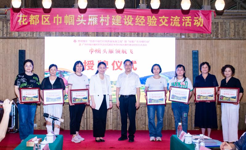 活动中,广州市妇联主席龚红、花都区委副书记程学晋向花城街罗仙村、狮岭镇马岭村、梯面镇横坑村、赤坭镇连珠村、花东镇石角村、花山镇小㘵村和新华街五华村等花都区第一批“巾帼头雁村”授牌。
