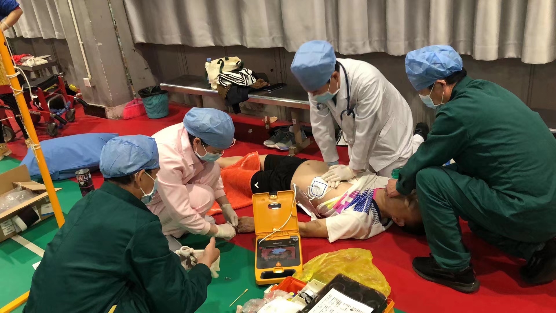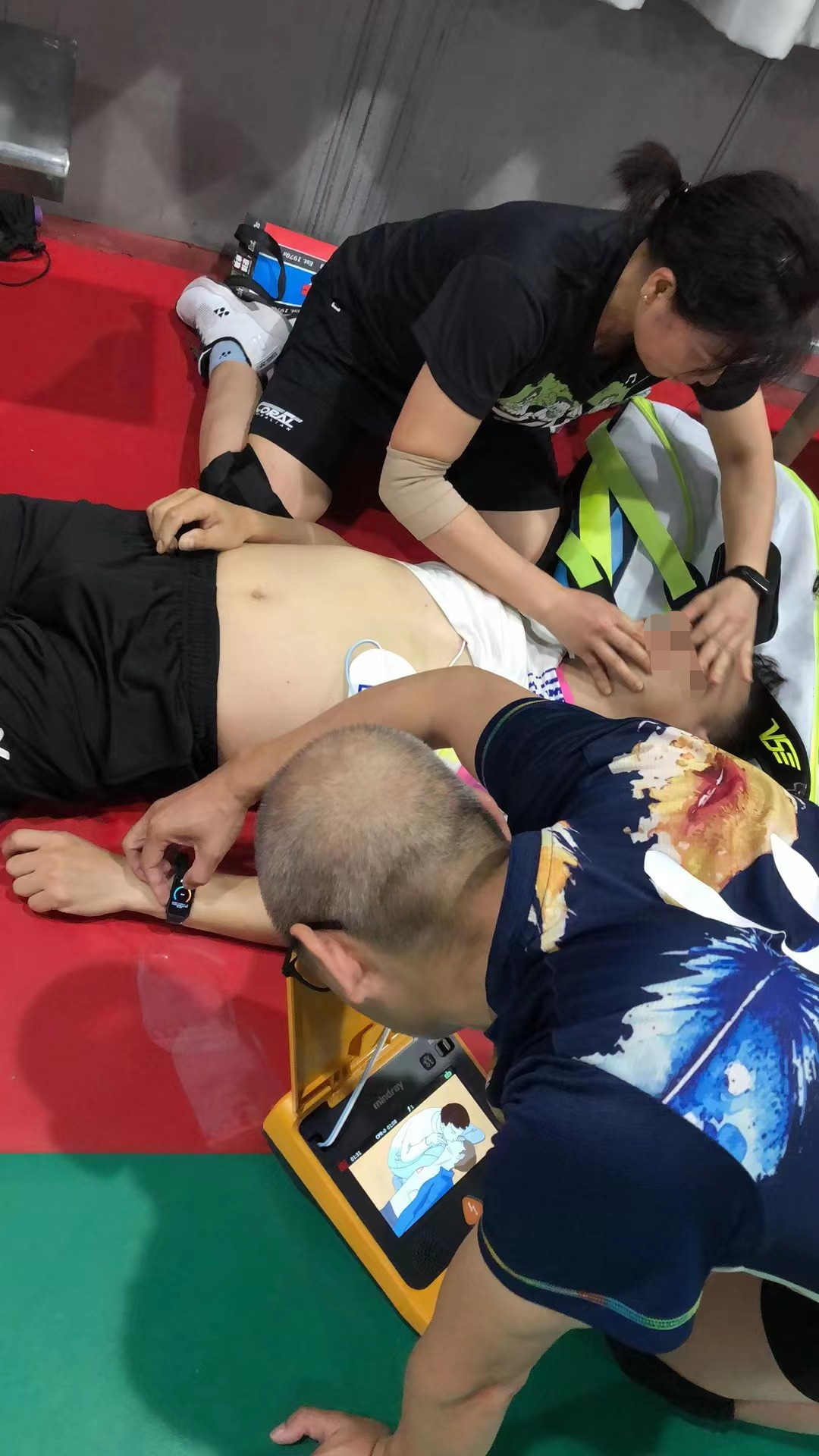 在经过AED除颤和另外5个循环的心肺复苏后,120救护人员抵达现场,接手患者进行了后续急救及转运工作。经医院诊断,该名患病球友为急性心肌梗塞。“入院后第三天,他就醒过来了。他女儿在群里发了视频,我看到他能说能笑、精神也不错,那一刻的感觉是‘一天都光晒’。”劳明曌说。