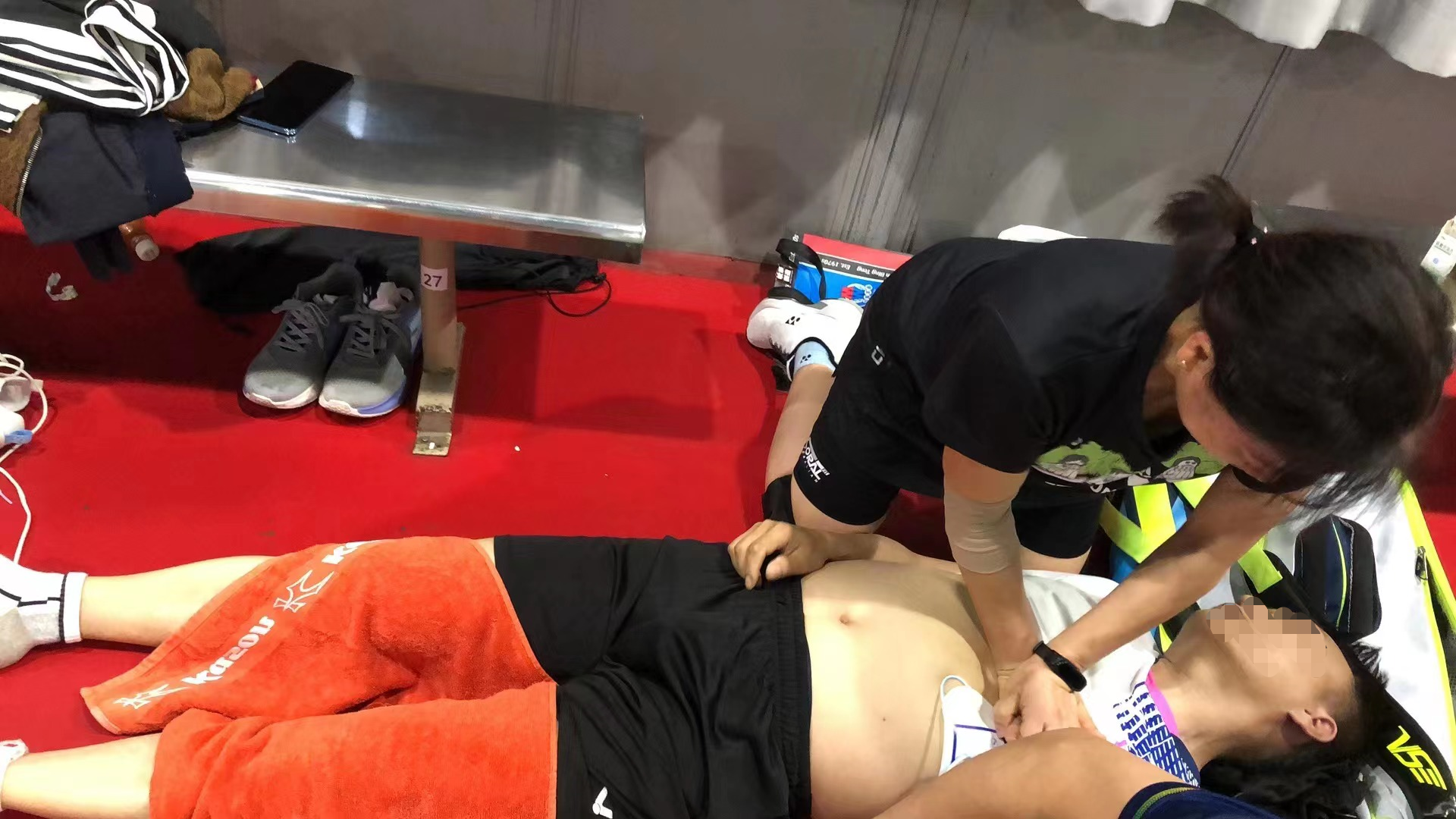 不容多想,劳明曌立刻采取CPR心肺复苏术为球友进行急救,同时指挥球馆工作人员取得AED并拨打120求援。因为按压对体力消耗大,另一名具备急救知识的球友加入和劳明曌进行轮换。大约5分钟后,球馆配置的AED送到了患者身边。劳明曌把心肺复苏的工作交给身边搭档后,在患者胸部皮肤贴好了AED电极片,并提醒身边人散开,不要触碰患者。