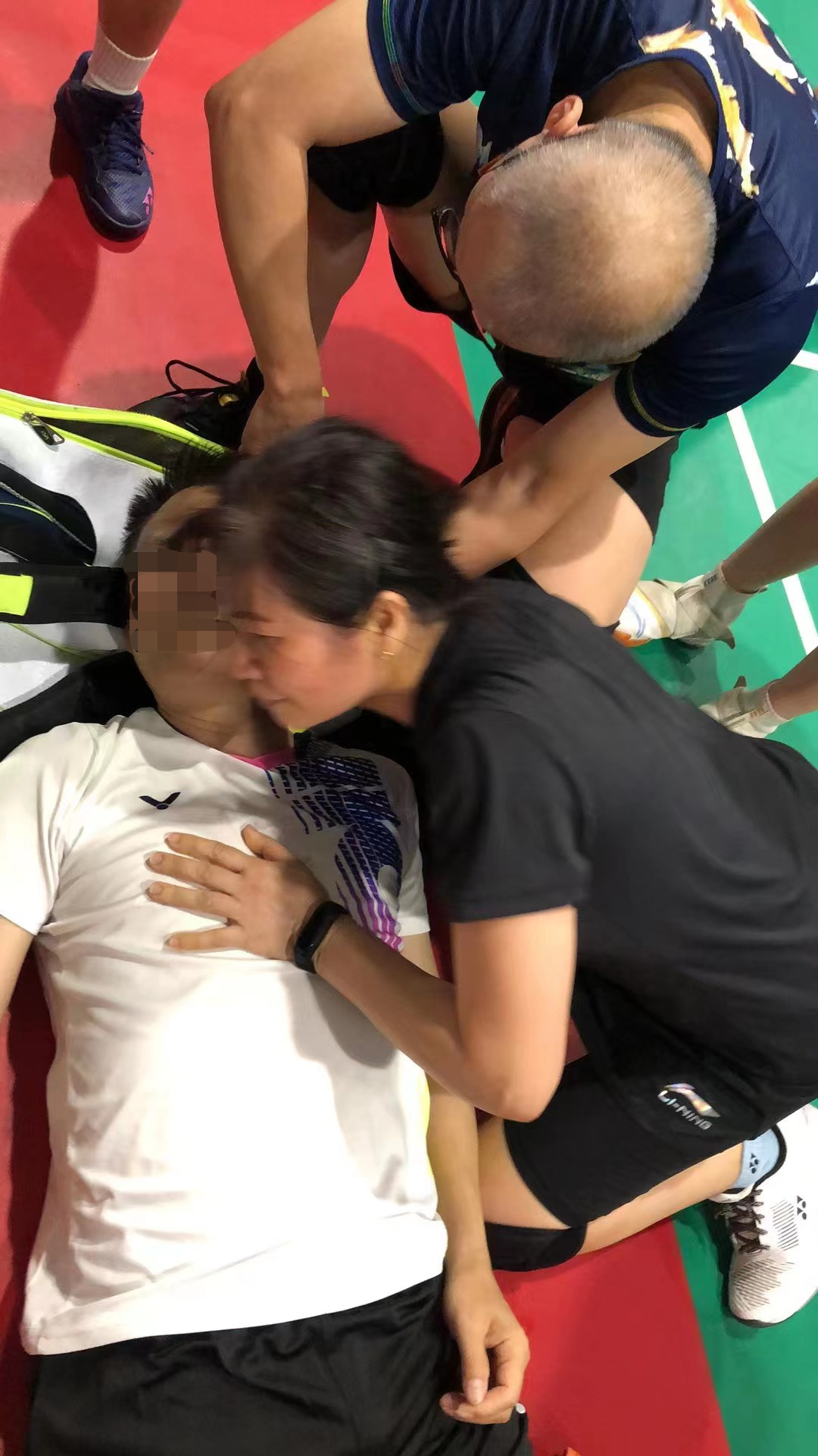 事发在海珠区庄头公园的附近一家羽毛球馆,劳明曌和球友长期相约在那里打球。她还记得,当时大约中午1时,自己刚打完一局,正和队友从球场上有说有笑地走下来。“那位球友刚好就坐在场边,我就看着他的身子突然斜着往下滑,滑到了椅子下。”