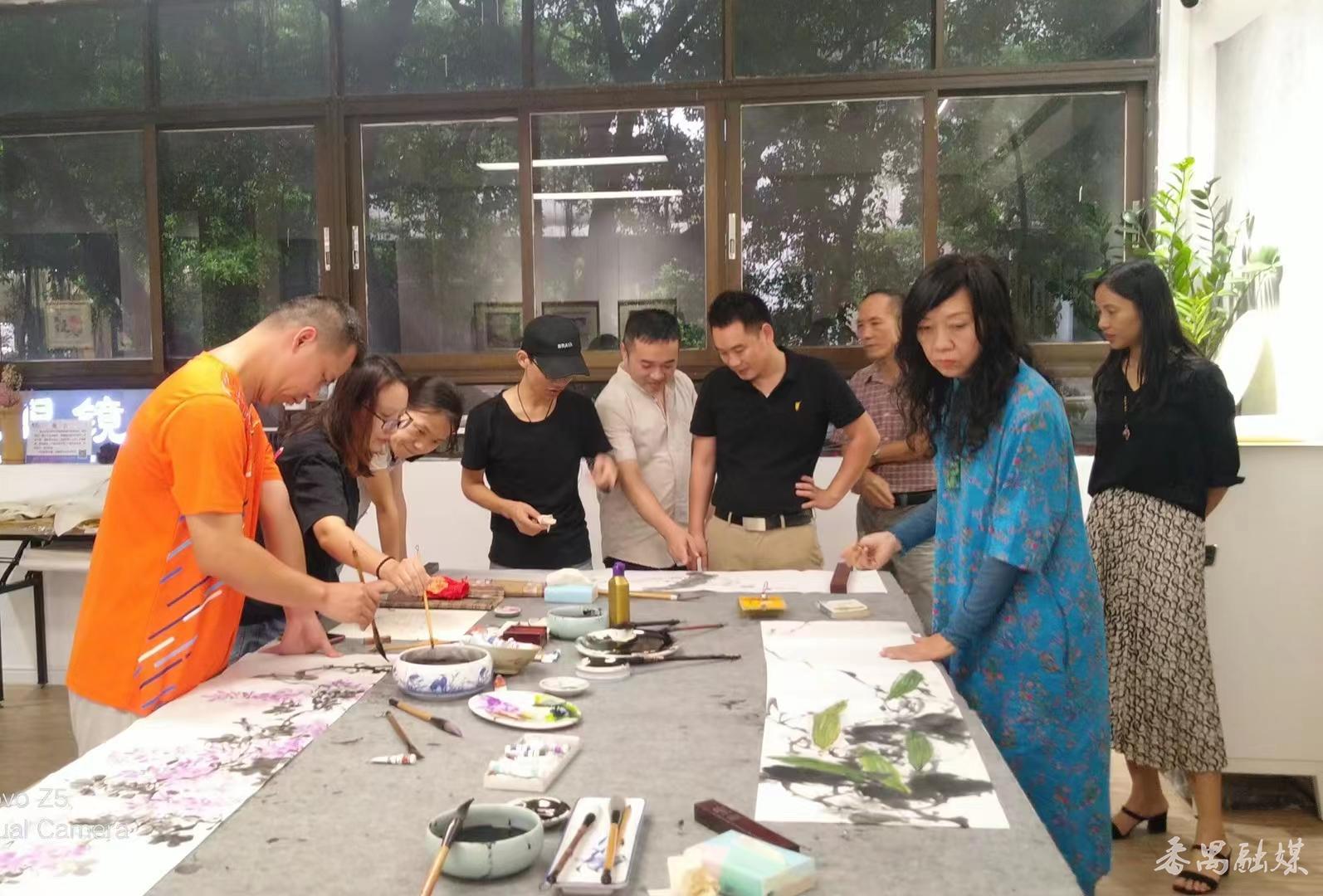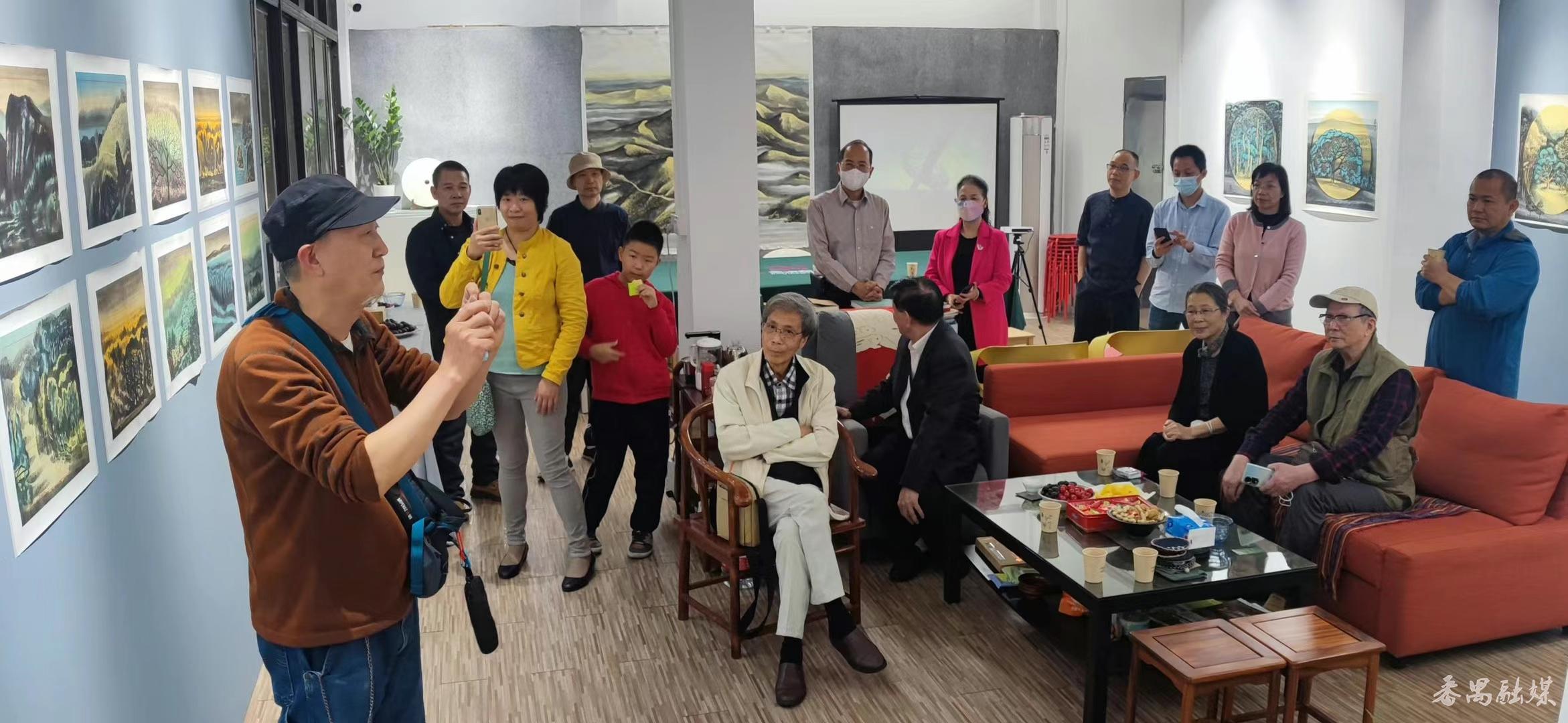旅美画家潘育川(左一)分享水墨画创作心得