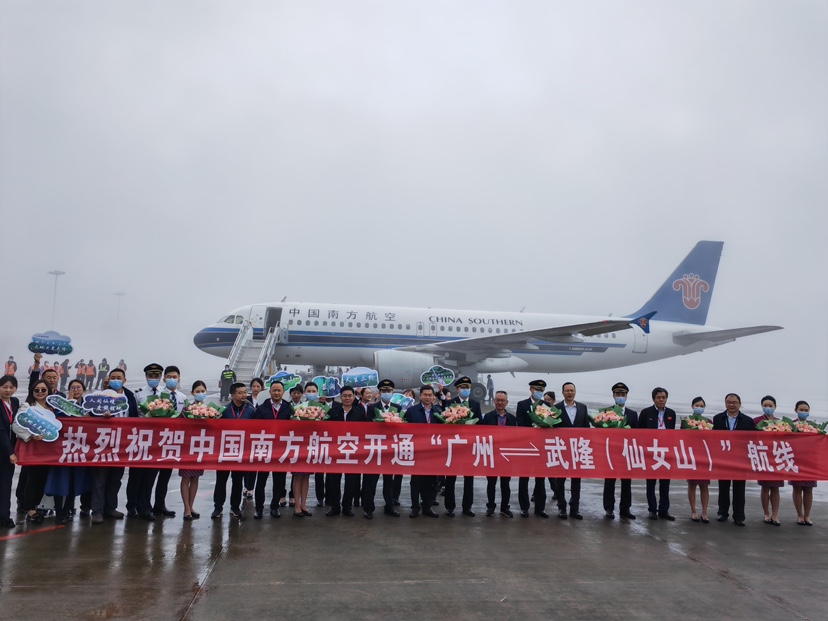 5月10日10时56分,中国南方航空CZ3229航班搭载150余名旅客从广州白云机场起飞前往重庆武隆区仙女山机场,标志着南航广州至重庆武隆直飞航线正式开通。