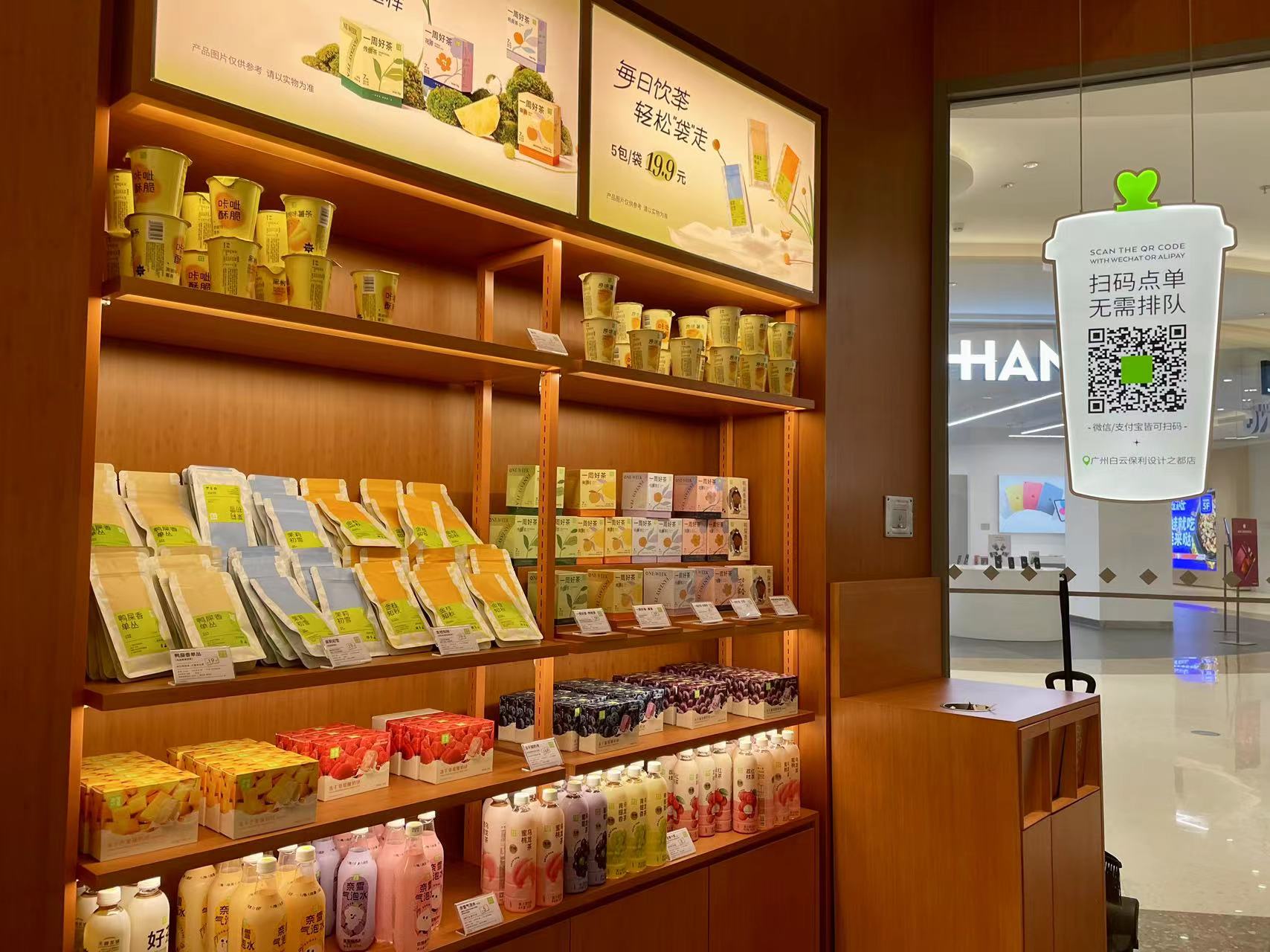 (柜台上茶饮、饮料产品琳琅满目)