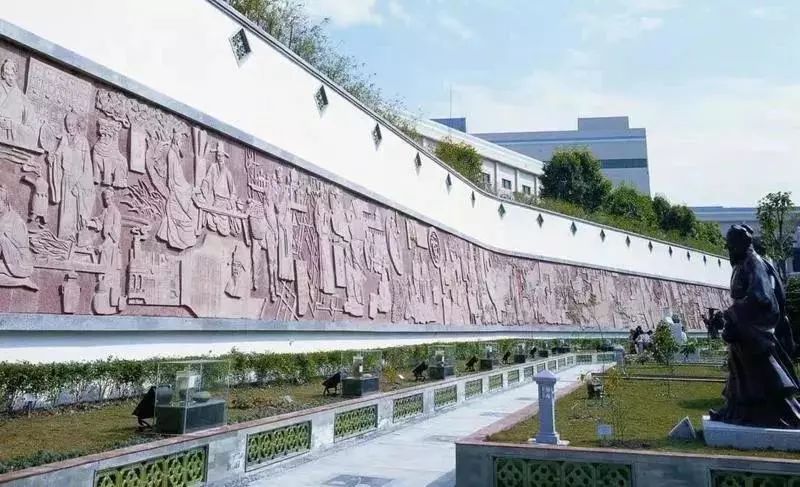 墙上的巨型浮雕,长99米,高3.3米,以时间为序,以人物故事为线索,描绘7000多年中医药发展历史。不少游客驻足浮雕前细细观摩,“仿佛走进一条时光隧道”。