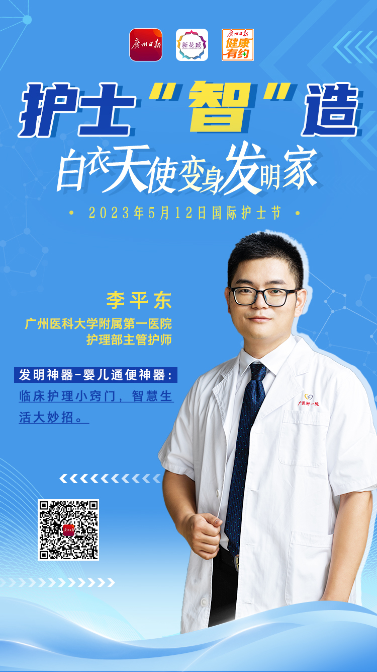 李平东是广州医科大学附属第一医院护理部的主管护师,同时也是一名经验丰富的“奶爸”。他在养育宝宝的过程中获得灵感,研发出一种能帮助婴儿通便的“神器”,用临床护理中探索出的小窍门帮宝宝解决了排便不畅的“大问题”。