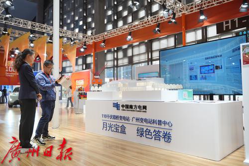 观众在展位了解南方电网广州110千伏猎桥变电站的设计理念