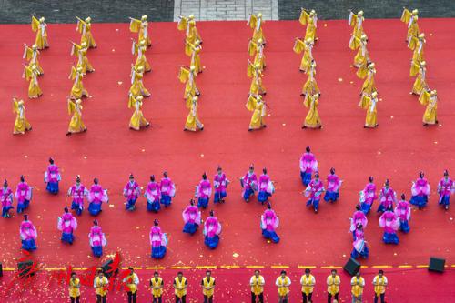 今年的妈祖祭祀大典演出,演绎规模约200人,规模宏大。礼炮和鼓乐齐鸣,开道旗、开道锣、提炉、提灯、仪仗渐次入场