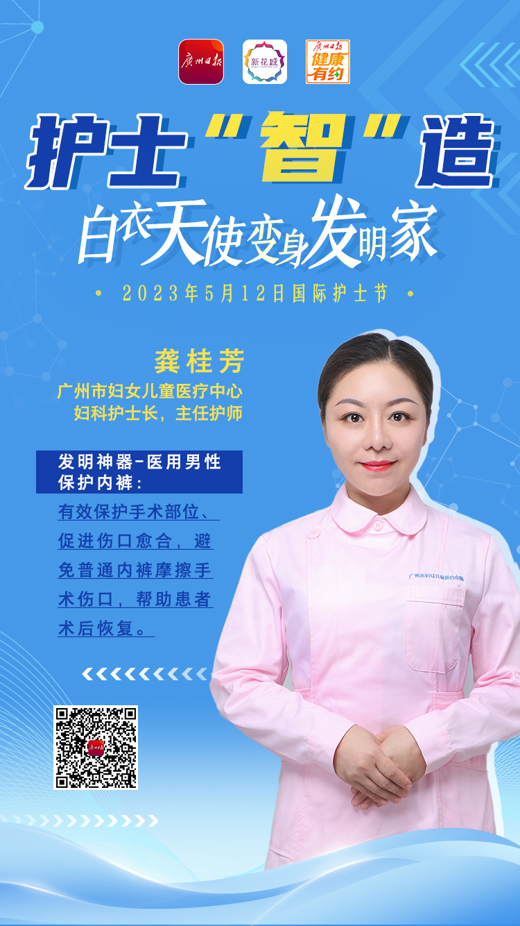 龚桂芳是广州市妇女儿童医疗中心妇科护士长、主任护师。她发现,不少孩子做完包皮手术后都会传开裆裤,但这么做,一方面不卫生不安全,另一方面在冬天也十分不便。并且由于生殖器官的重要性和特殊性,术后一旦出现并发症,患儿家长都会非常焦虑。她萌生了发明一种男性生殖器术后保护内裤的想法。