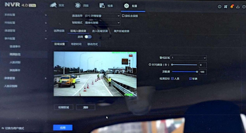 路面作业安全智能预警系统集成智能AI摄像头、爆闪警灯、大功率扬声器等前端设备和NVR监控硬盘录像机、车载显示屏等后端设备,可安装在路政巡查车、防撞车、清扫车、皮卡等车辆后部,实现“随车移动、灵活使用”的效果,同时系统具备开放式配置功能,作业人员可根据现场情况随时观察和调节警戒区域,最大程度保护车辆和司乘人员安全。