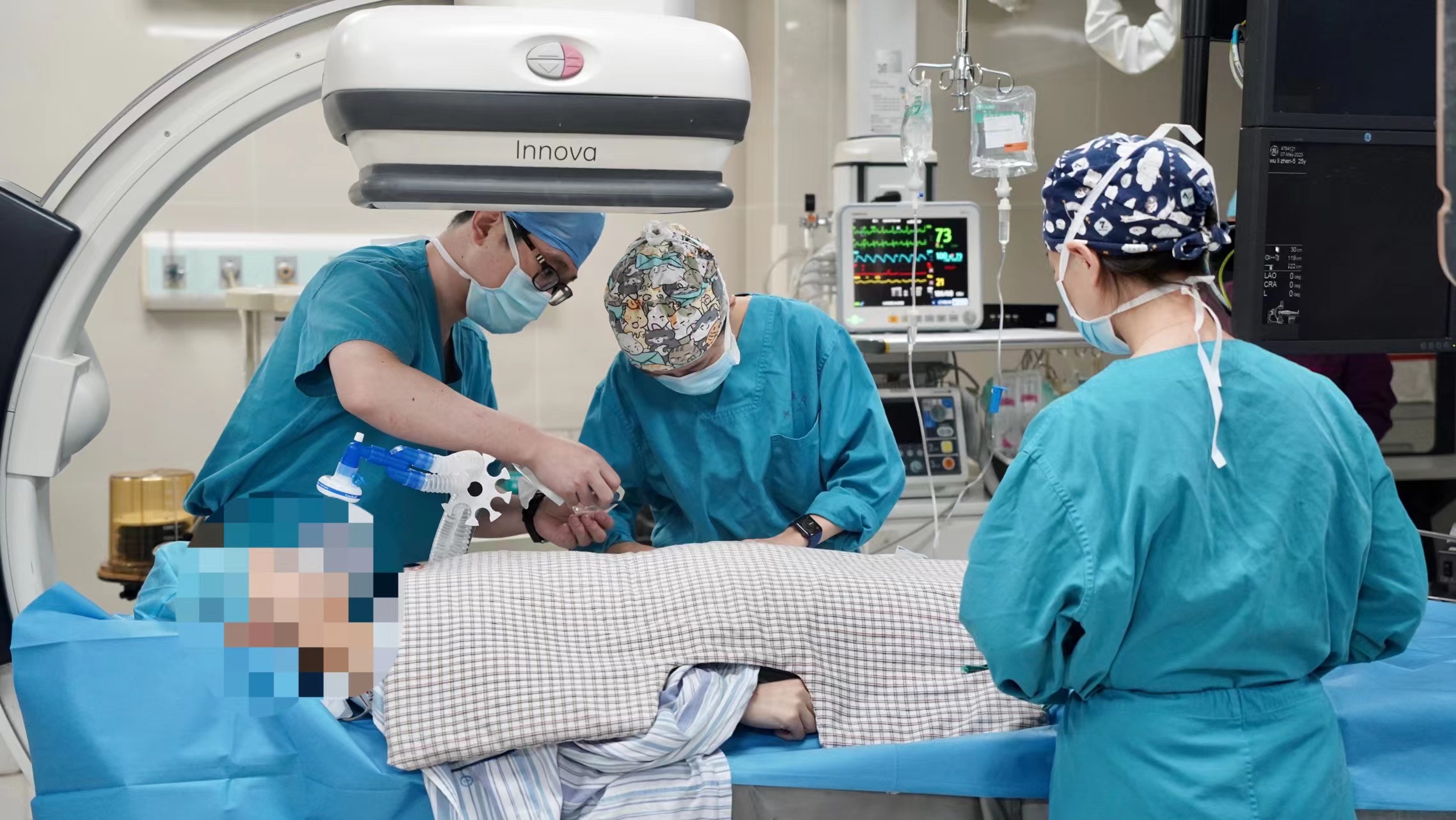 麻醉团队及手术室护士各自有序分别进行麻醉诱导和留置尿管