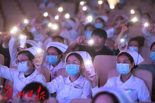 由李蓉弹唱的歌曲仰望星空仿佛把参会人员带入浩渺无穷的宇宙中,现场护士纷纷拿出手机打开手电筒,情不自禁地挥舞起来,一个个手电筒宛如一颗颗闪亮的星星,汇集成一片星海,把现场气氛推向高潮。