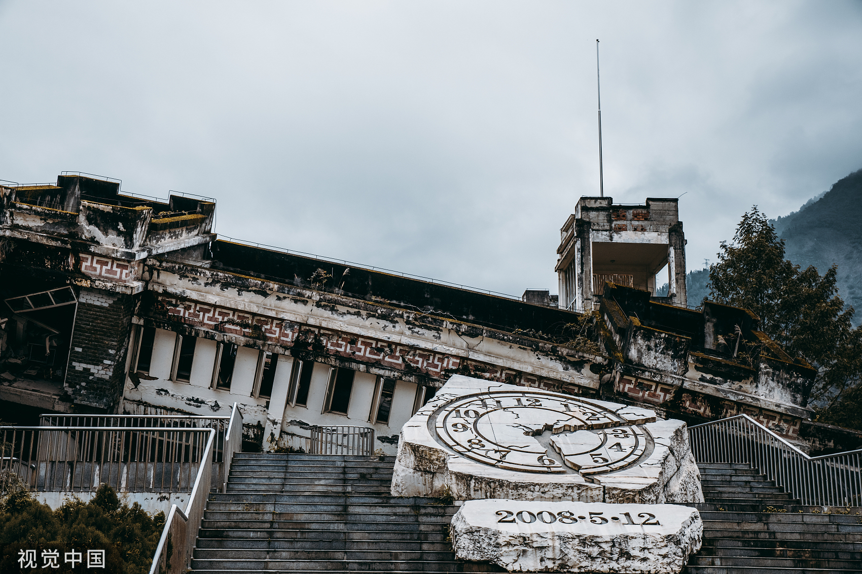 四川省汶川县映秀镇漩口中学地震遗址上,矗立着一座汉白玉时钟雕塑。破碎的表盘上,时间定格在2008年5月12日下午2时28分。