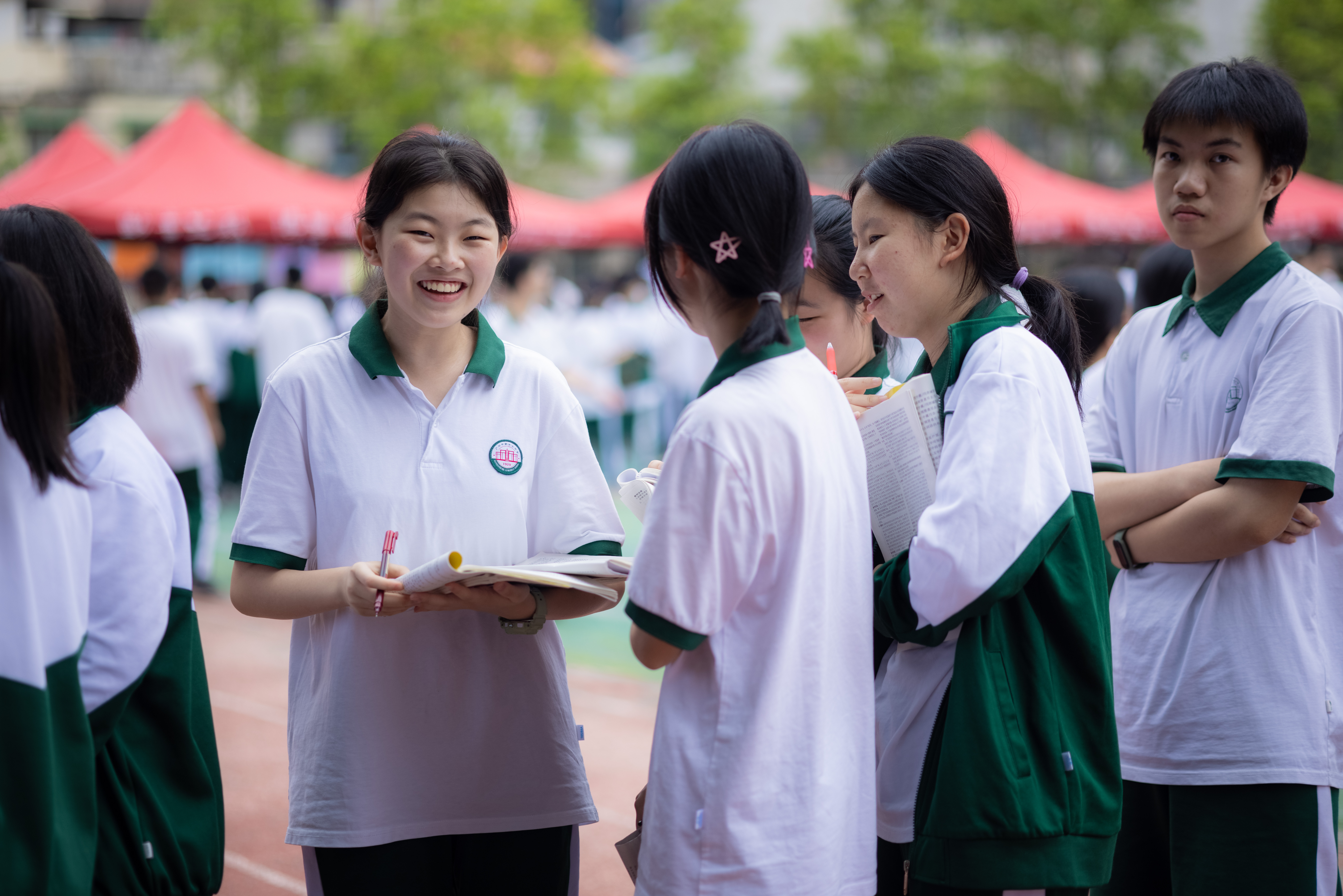 “加油,加油,再来一个!”5月10日,记者在十七中的操场上,看到几位男同学在操场的单杠上比赛引体向上,周围的同学们不断为他们加油鼓劲儿。这是广州市第十七中学举办2023年校园文化科技节的现场,热闹非凡。