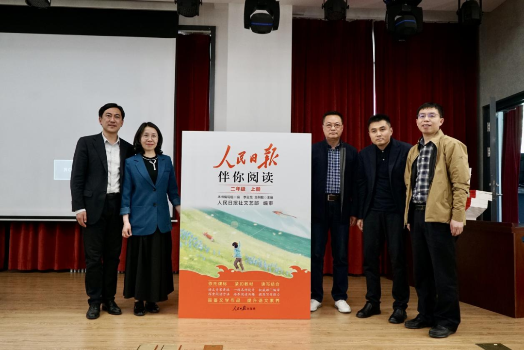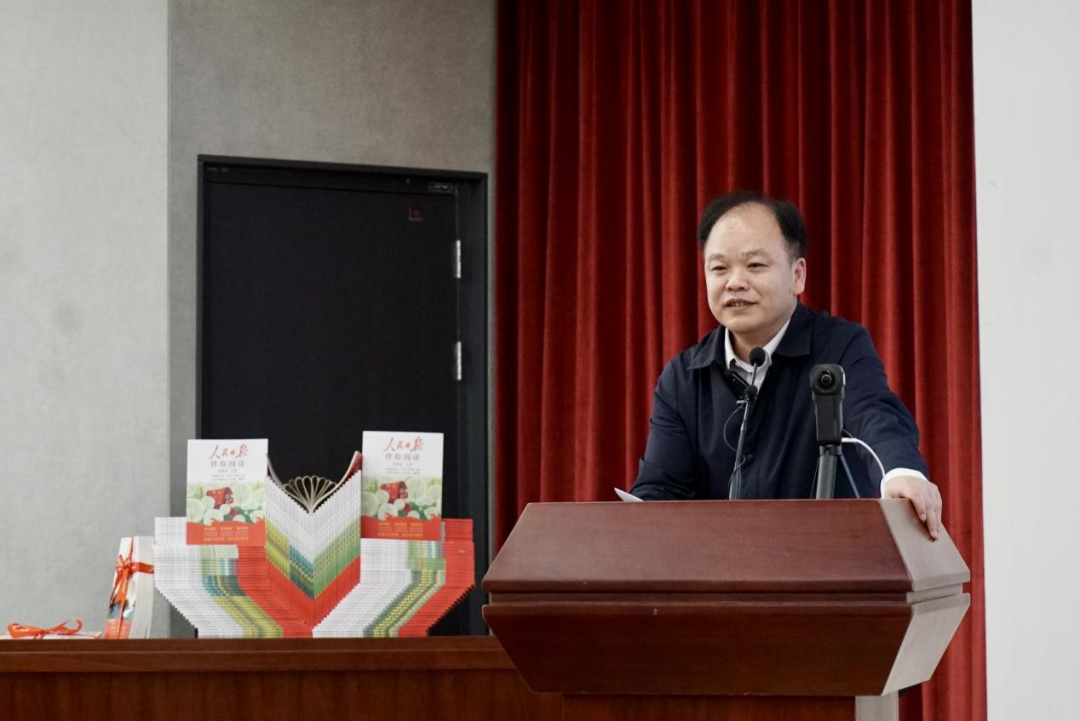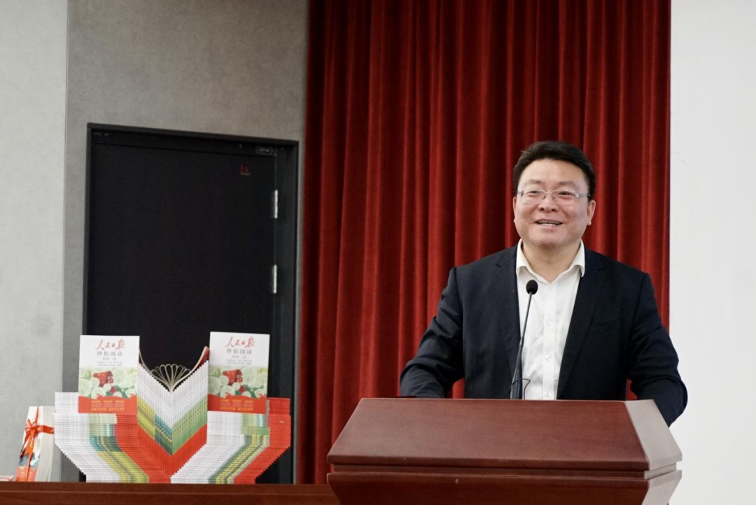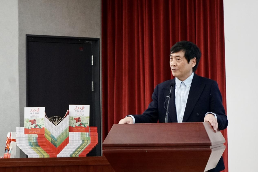 在赠书环节,人民日报出版社社长刘华新、《十月少年文学》主编曹文轩向人民日报图书馆馆长何宇赠送《人民日报伴你阅读》丛书和《十月少年文学》杂志。