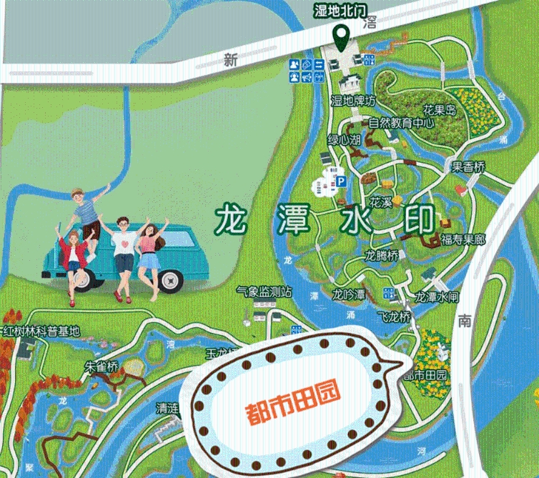 由于湿地牌坊东侧500米处停车场的停车位有限,建议乘坐公共交通工具,绿色出行