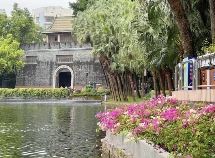 红橙黄绿青蓝紫,五彩斑斓的花朵装点着层叠错落的驳岸,古城墙倒影与湖上碧波互相影衬,迎着美好的暖阳,伴着空气中飘散的阵阵幽香。
