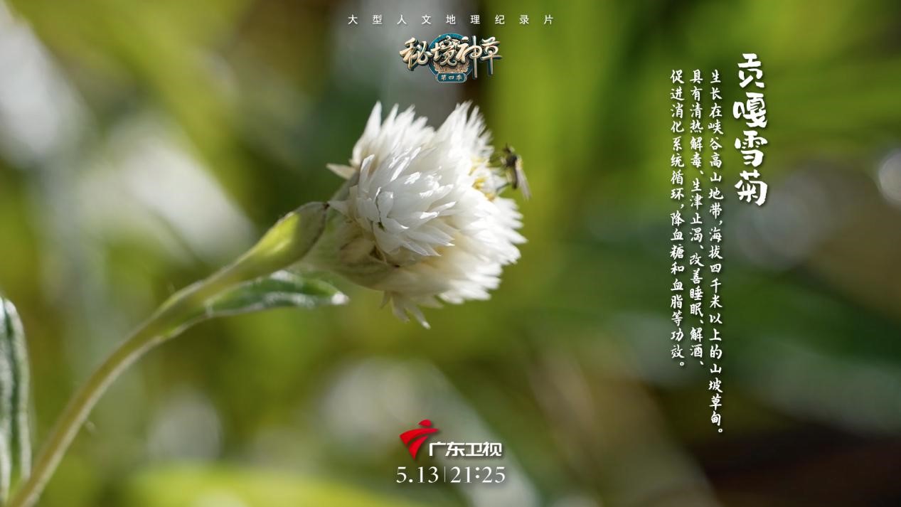 今晚,广东卫视原创自制的人文地理纪录片《秘境神草》第四季第六期播出。采药人深入秘境寻觅珍异奇花,攀登巍峨雄奇的阿尼玛卿山,途径奔腾不息的大渡河,穿越碧草如茵的呼伦贝尔大草原,续写人与自然、人与本草的故事。