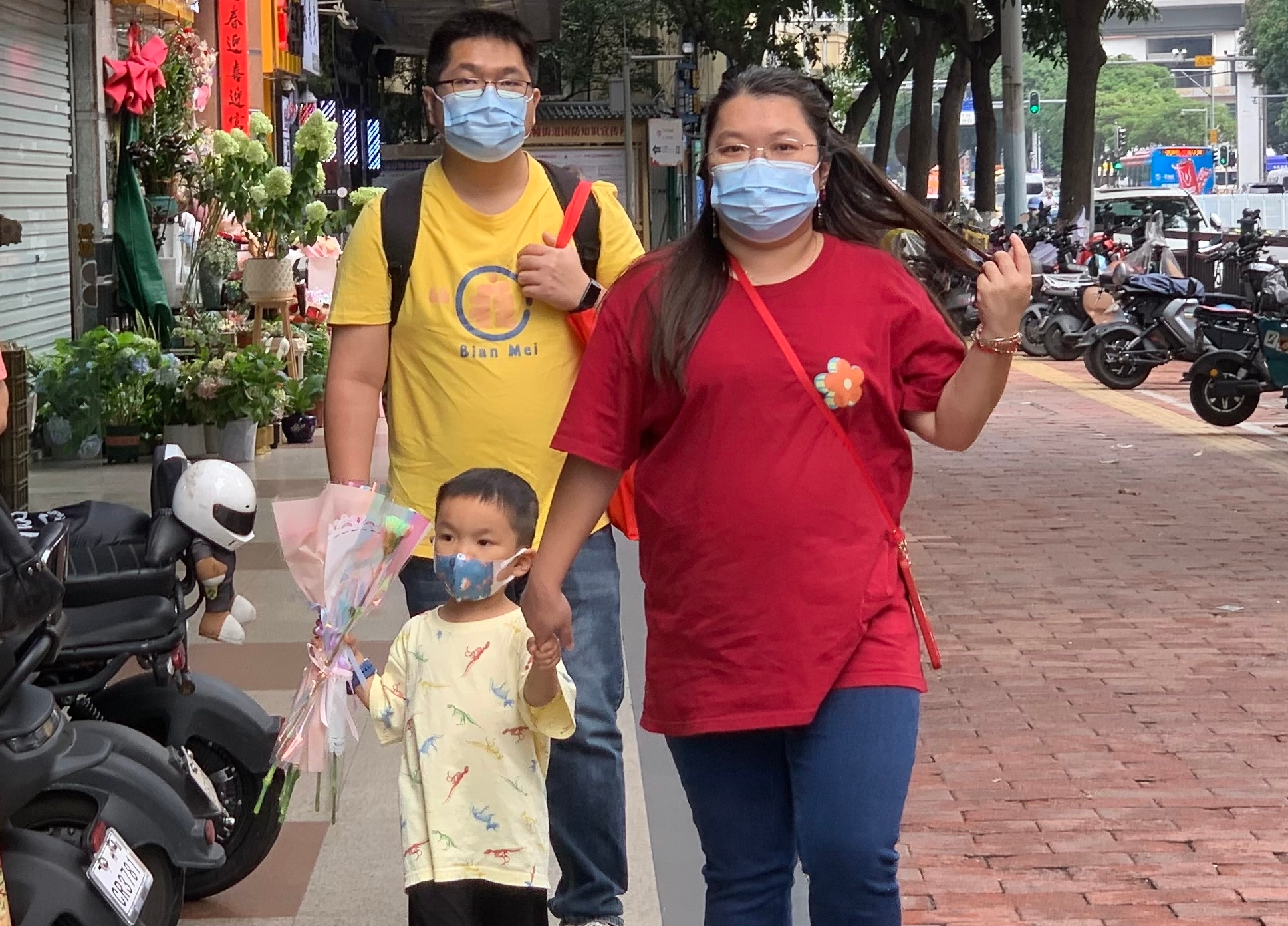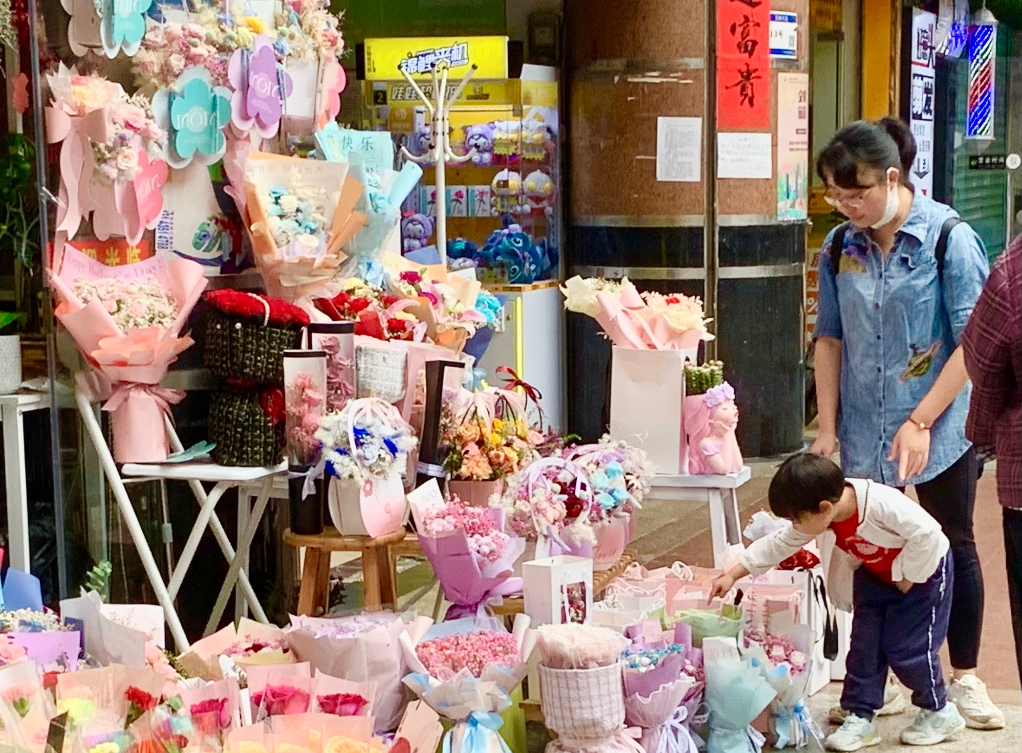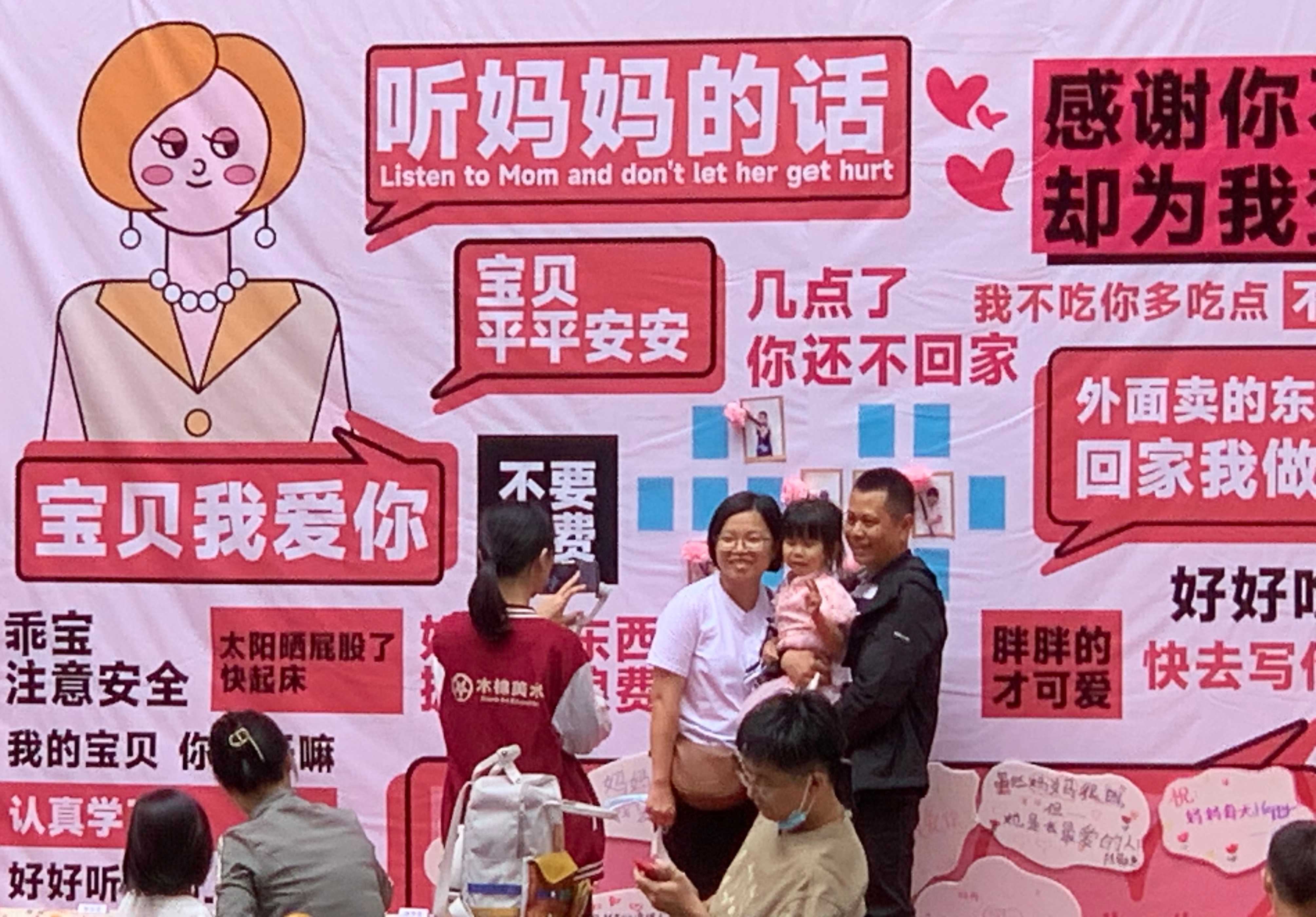 在市内的许多地方,都可以看到母亲节的主题活动。