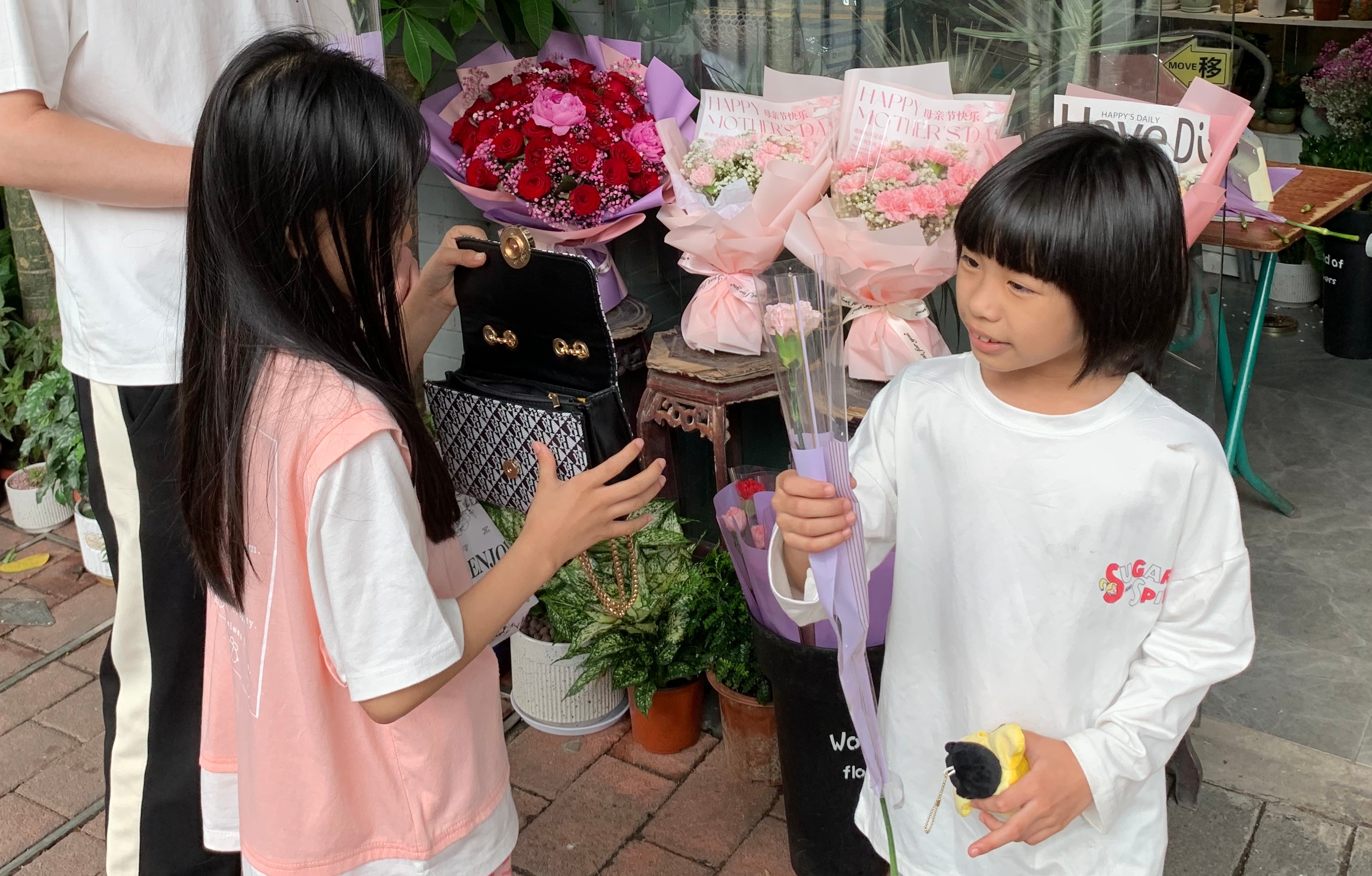 商家为讨母亲欢心,也是绞尽脑汁。在正佳广场、广州天河领展广场等商场,母亲在购物的同时,还能收到商场赠送的康乃馨,工作人员在送花的时候,还会体贴地为母亲装好花束。在东方宝泰车尾箱市集,汇聚花艺、饮食、潮玩等摊位,母亲在这里可以领取神秘礼品。