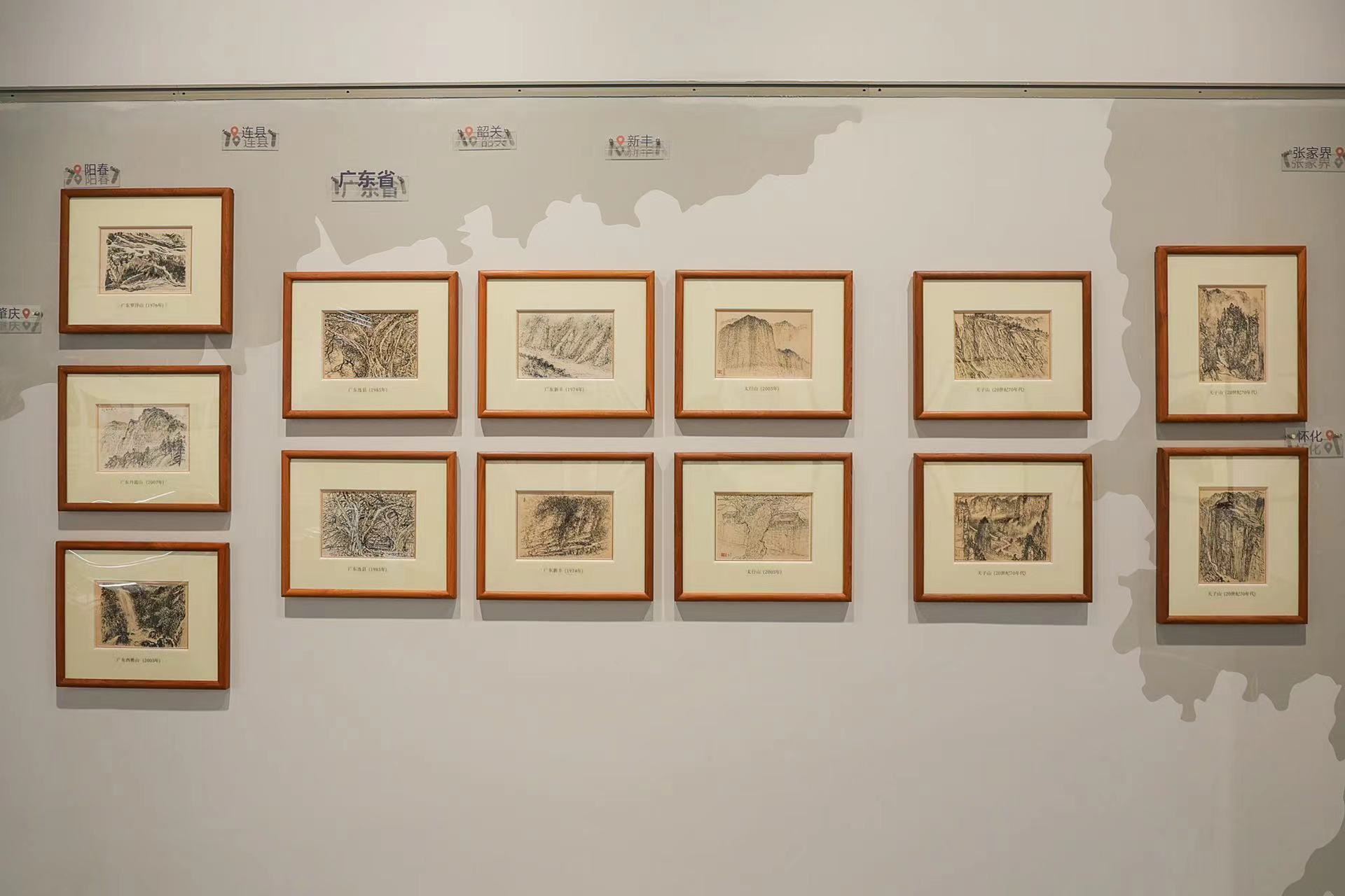 展厅中展出的多件写生手稿,是陈金章继承和发展岭南画派“写生创作”的最直观体现。其手稿虽方不盈尺,却或山脉蜿蜒、或溪流潺潺、或山邨错落、或云水莫测、或树木葱郁,引人入胜、动人心魄,使人恍如置身现场。