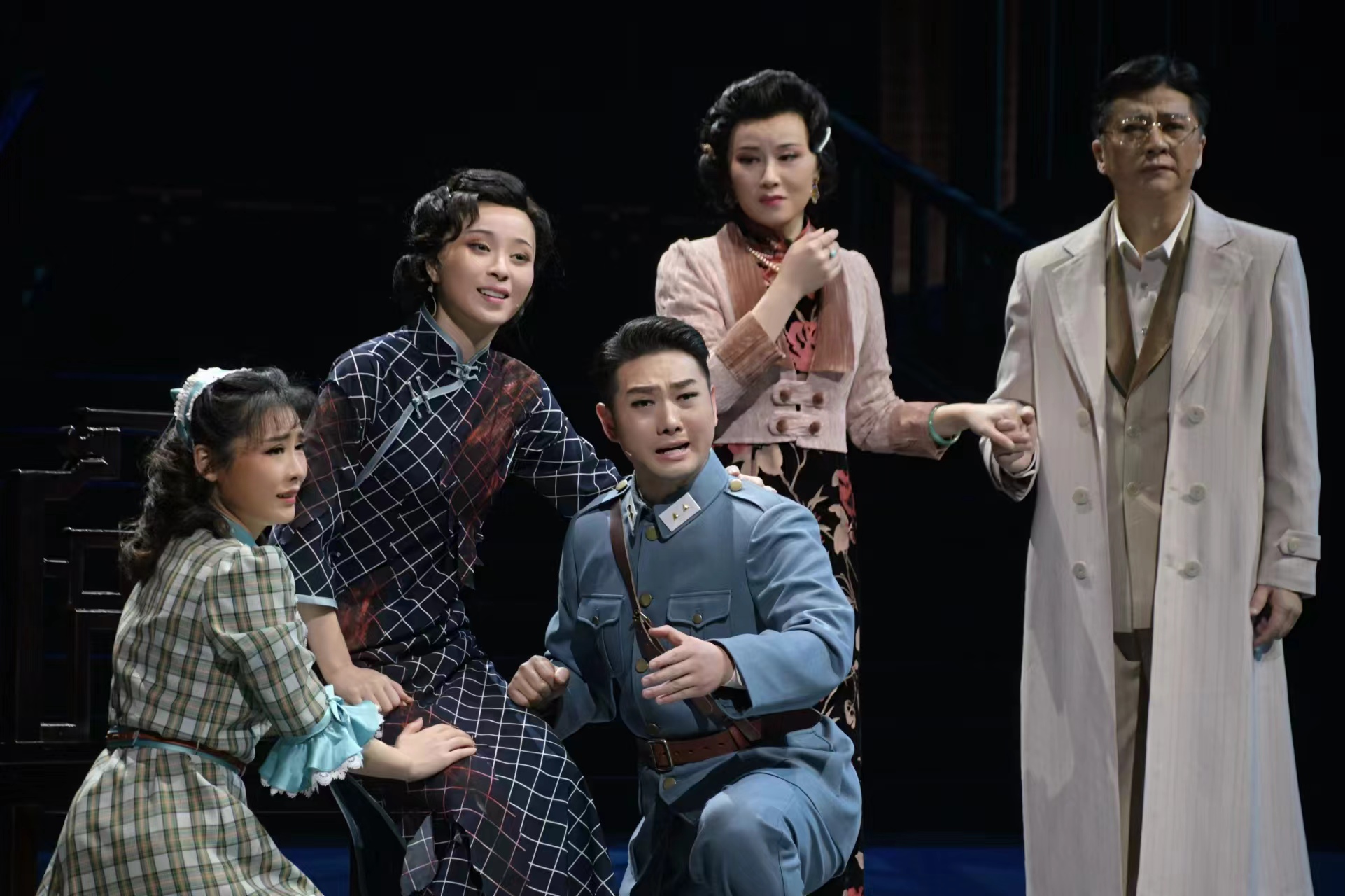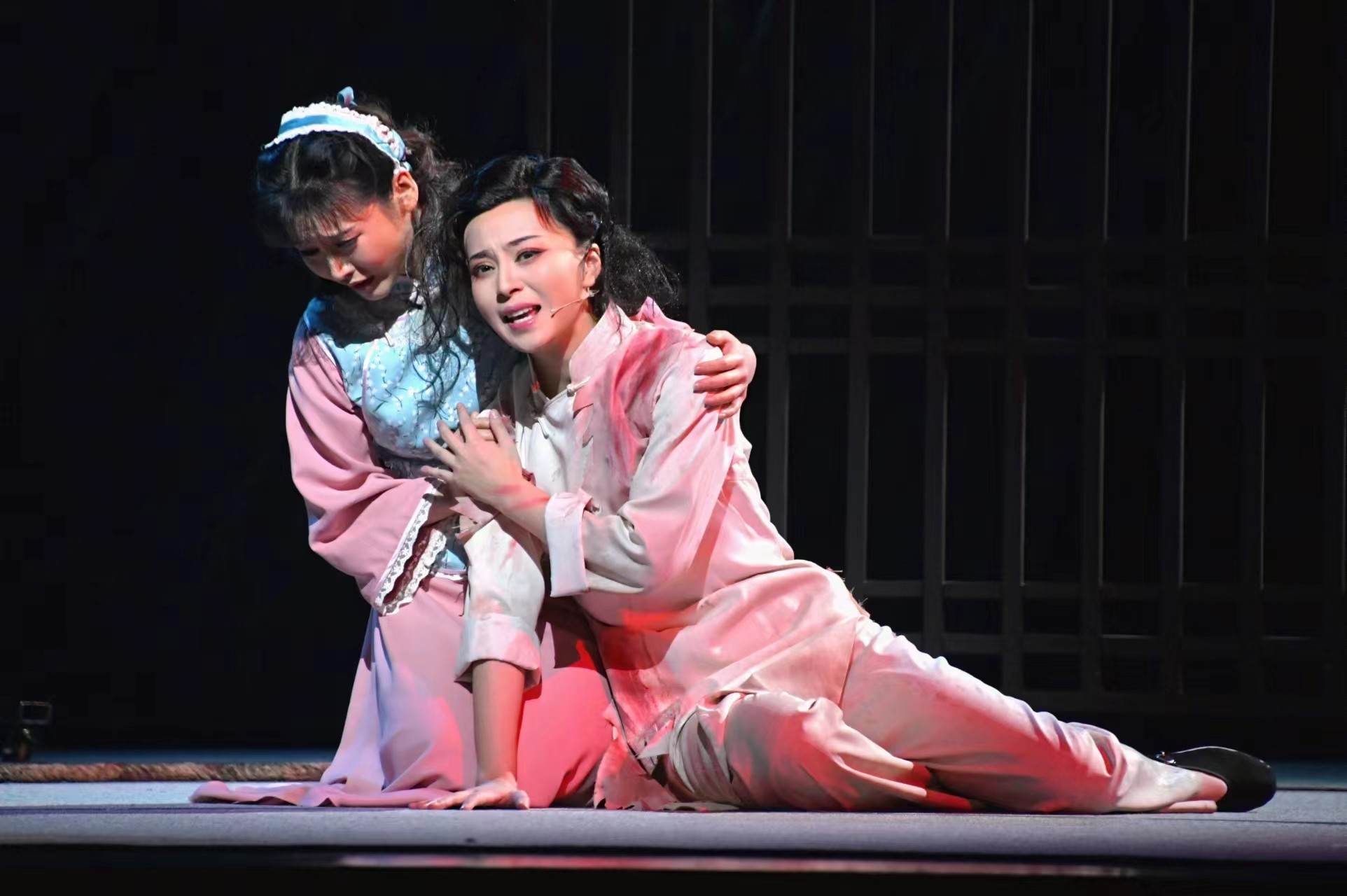 剧中,经典红色音乐与舞蹈演绎相结合,融入了展现共产党人坚毅果敢的表演身段,和正气凛然、响遏行云般的大段唱腔,使林雨霏的形象更加血肉丰满。该剧第二场,林雨霏有一段唱腔“此时我是一名母亲,更是一名战士,我要把牢房当作我的战场,扬清激浊”,展现出了角色下意识的母性和与敌人斗争的理性的心理交锋。