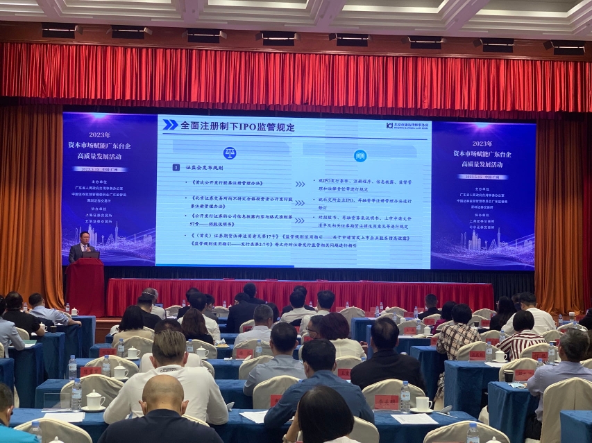 活动中,相关辅导机构专家讲师向台商台企解读股票发行注册制政策,进行上市实务辅导。广东首家在北交所上市的台企纬达光电相关代表分享上市经验。