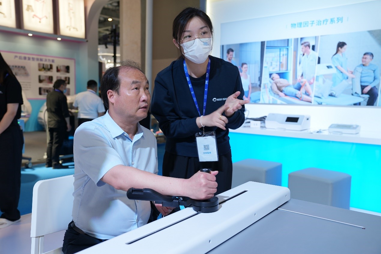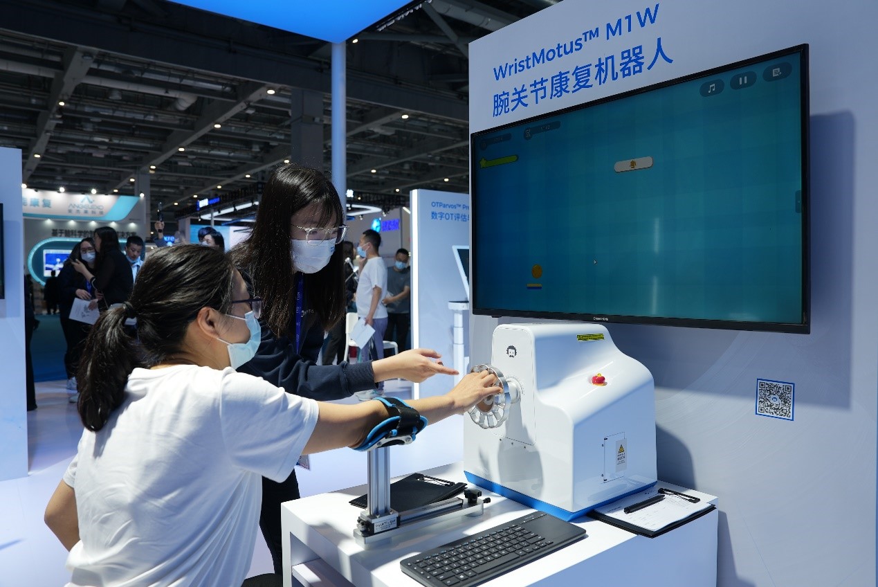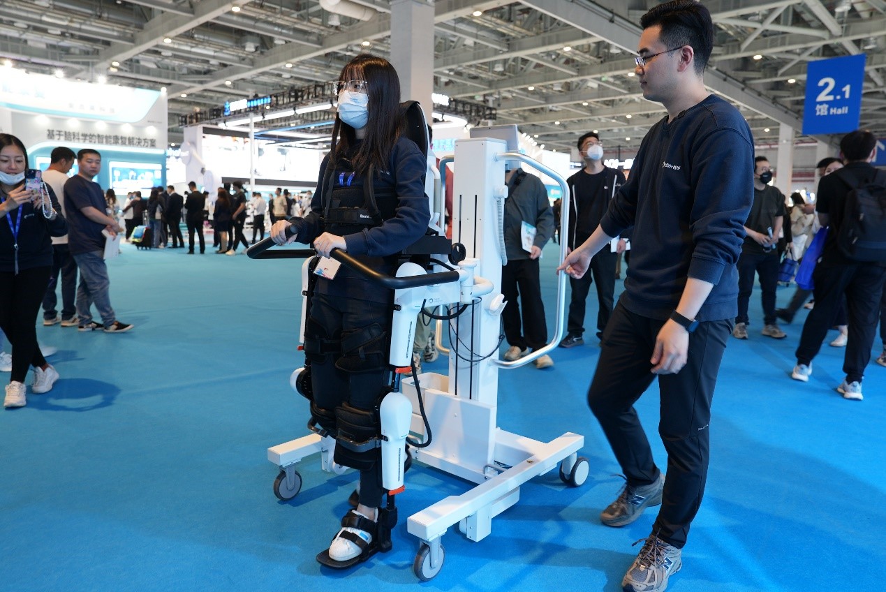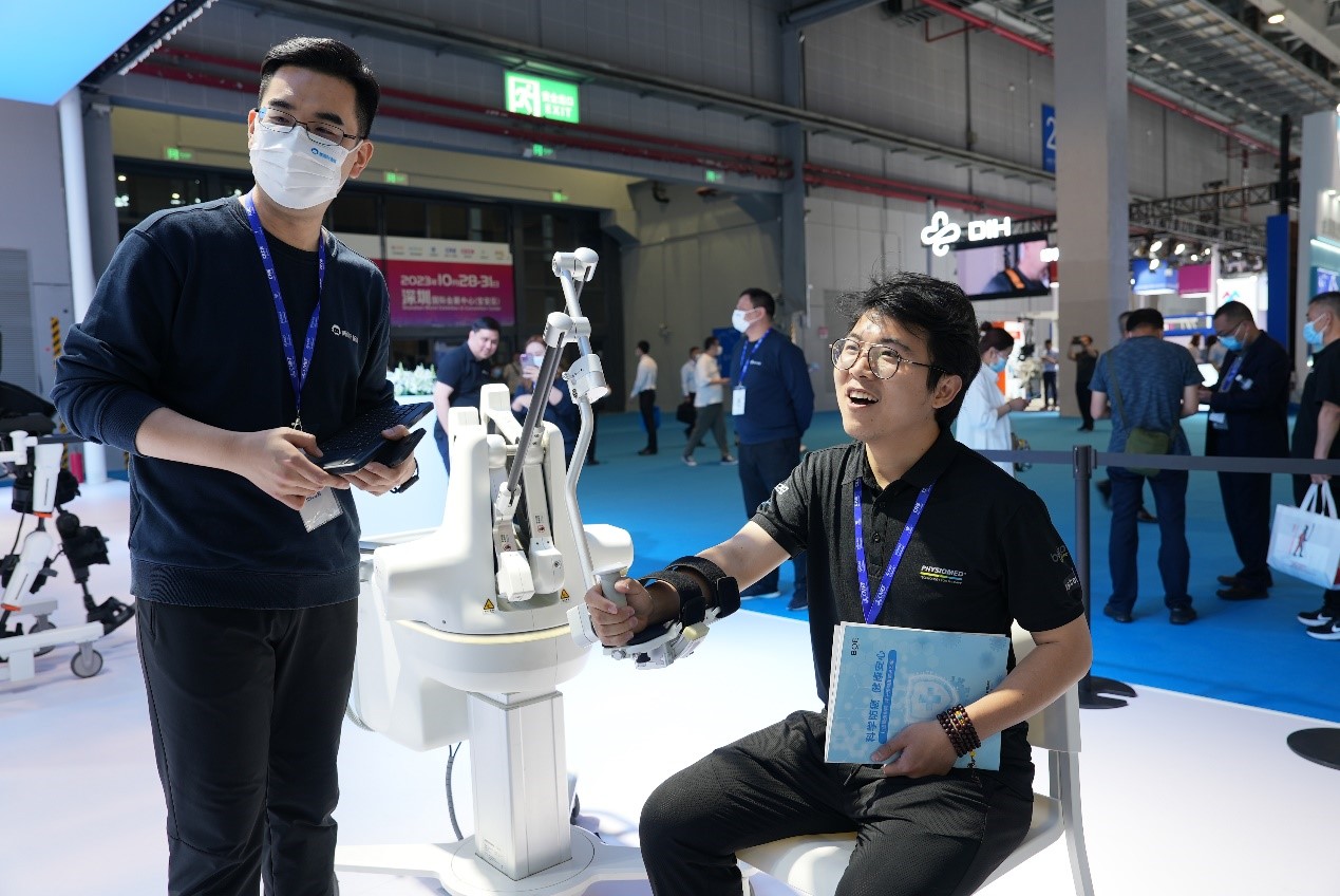自2020年以来,医疗器械出口持续增加,国产医疗器械迎来前所未有的发展机遇,用于康复领域的智能机器人,正在开启康复医疗智能化时代,以技术革新引领康复服务信息化、标准化、智能化,推动康复医疗服务转型升级。 记者看到,在本届CMEF上,傅利叶智能展出了ArmMotus EMU三维上肢康复机器人、ExoMotus M4下肢康复机器人、ArmMotus M2 Pro 上肢康复机器人、物理因子治疗系列等智能康复产品,以及空气压力按摩仪等多款家用康复产品,全方位展现智能康复行业前沿科技,新技术、新产品、新应用。傅利叶智能康复机器人结合应用场景,通过视、听、触等多感官交互反馈,吸引观展者驻足参观,踊跃体验智能康复服务。