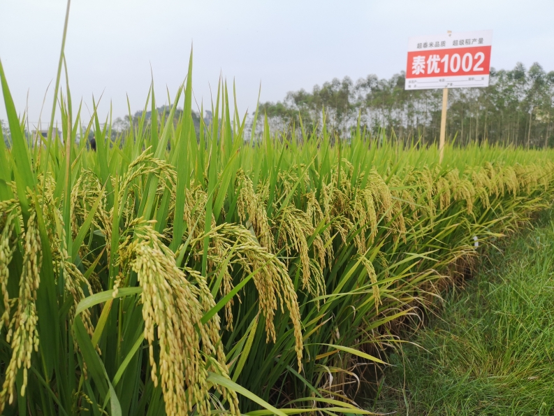 “泰优1002”是广东省农业科学院水稻研究所与广东省金稻种业有限公司共同选育的,其植株矮壮、株型中集、有效穗多,丰产性好,高抗白叶枯病,米饭软滑、饭味浓、口感佳,深受农户欢迎,已经成为华南地区弱感光杂交稻的当家品种。