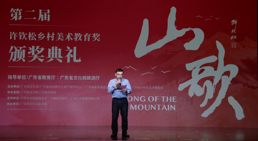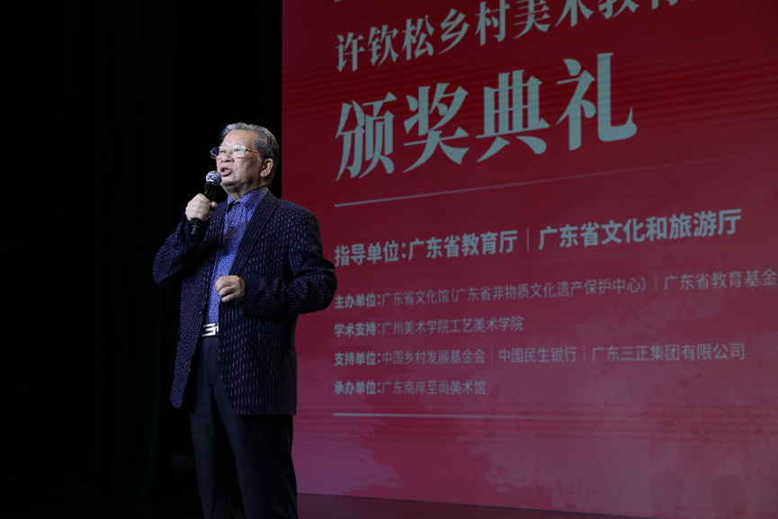 活动现场还启动了第三届“许钦松乡村美术教育奖”, 主办方表示未来将继续携手广东省文化馆等多方力量,研发特色非遗课程,增强乡土文化自信,联合各县区教育部分和社会力量持续陪伴支持乡村美术教师,落实培训成果。