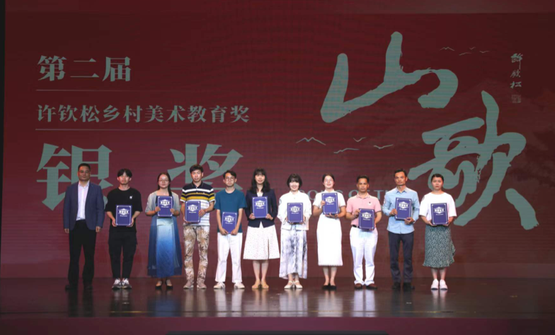 5月14日,第二届许钦松乡村美术教育奖颁奖典礼及成果展在广东省文化馆举办。本次活动由广东省文化和旅游厅、广东省教育厅指导,广东省许钦松艺术基金会、广东省文化馆(广东省非物质文化遗产保护中心)、广东省教育基金会、广东教育学会主办。“乡村美术教师培育计划”的专家导师、全省各地美术教研员代表、公益伙伴以及第二届“许钦松乡村美术教育奖”获奖老师等共300余人参加了颁奖典礼。