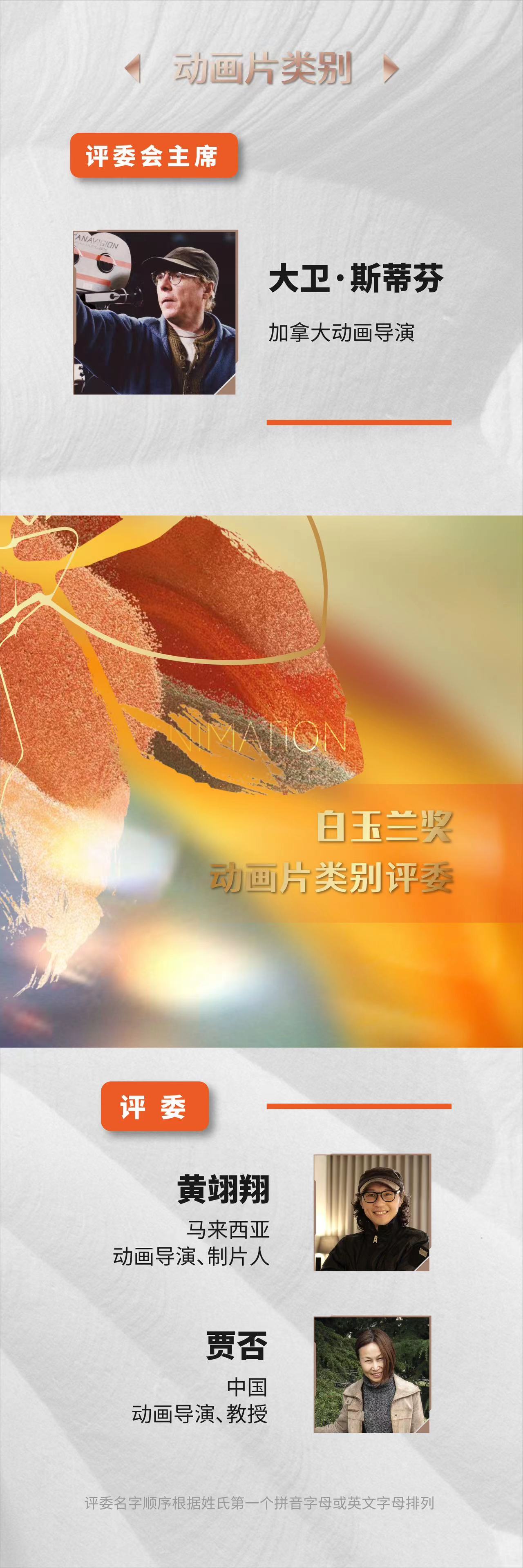 作为中国电视行业的风向标,上海电视节白玉兰奖既对过往的优秀作品给予褒奖,更为未来的创作理清思路。发布会上公布了第二十八届上海电视节白玉兰奖评委会名单。中国著名影视学者胡智锋将出任电视剧评委会主席,中国电视剧单元评委包括段奕宏(中国演员)、穆德远(中国摄影)、孙皓(中国导演)、王珞丹(中国演员)、王三毛(中国编剧)、赵彤(中国文艺评论)等;海外电视剧单元评委包括玛尔·索度佩(Mar·Sodupe,西班牙演员)、尹在爀(JaeHyeok Yoon,韩国制作人)。美国/马来西亚纪录片制片人邓宝丝将出任白玉兰奖纪录片评委会主席,中国教授、纪录片策展人何苏六、德国纪录片制片人萨比娜·布贝克担任评委。加拿大动画导演大卫·斯蒂芬将出任白玉兰奖动画片评委会主席,马来西亚动画导演、制片人黄翊翔和中国动画导演、教授贾否担任评委。