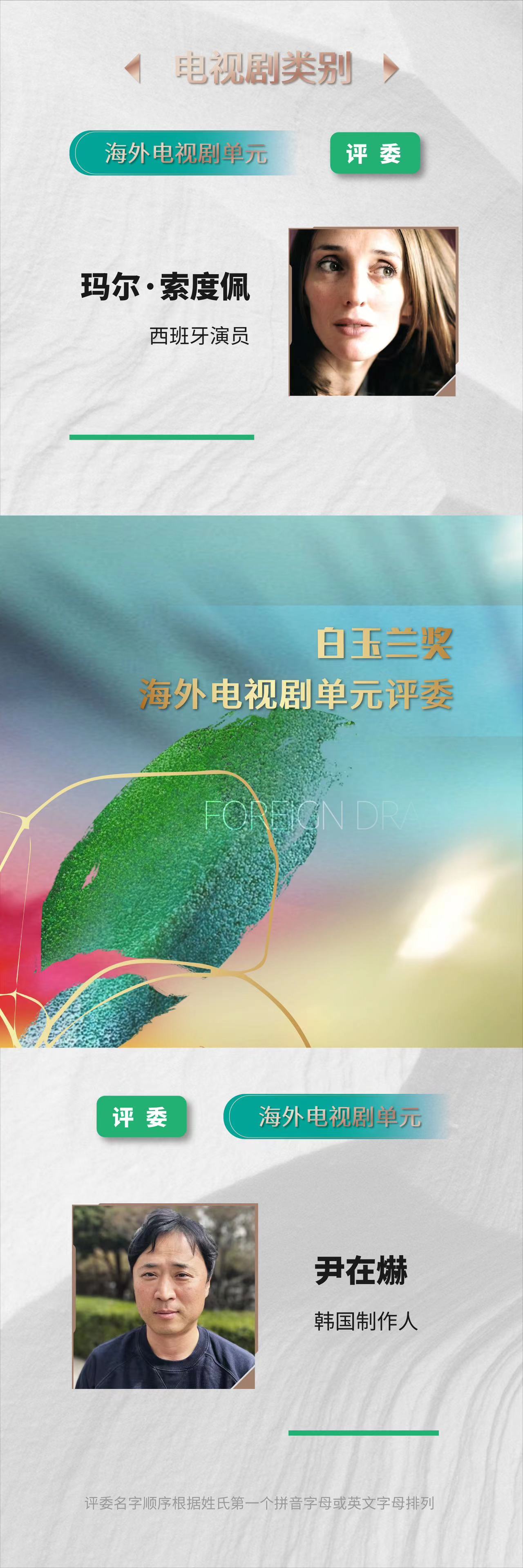 据悉,电视节期间,评委会将对中外电视剧、纪录片、动画片进行终评,综艺类别则由选片委员会投票产生获奖名单。各大奖项将于6月23日晚在梅赛德斯奔驰文化中心进行的“白玉兰绽放”颁奖典礼上揭晓。
