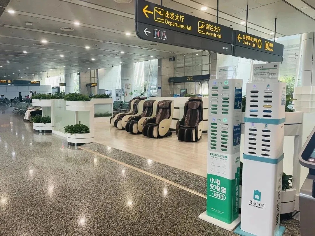 每台按摩座椅具备按摩、睡眠、充电等功能,座椅自身配备有USB充电接口,即插即充,方便快捷,免费使用。有需要的旅客,还可通过扫码支付启用按摩功能和睡眠模式。