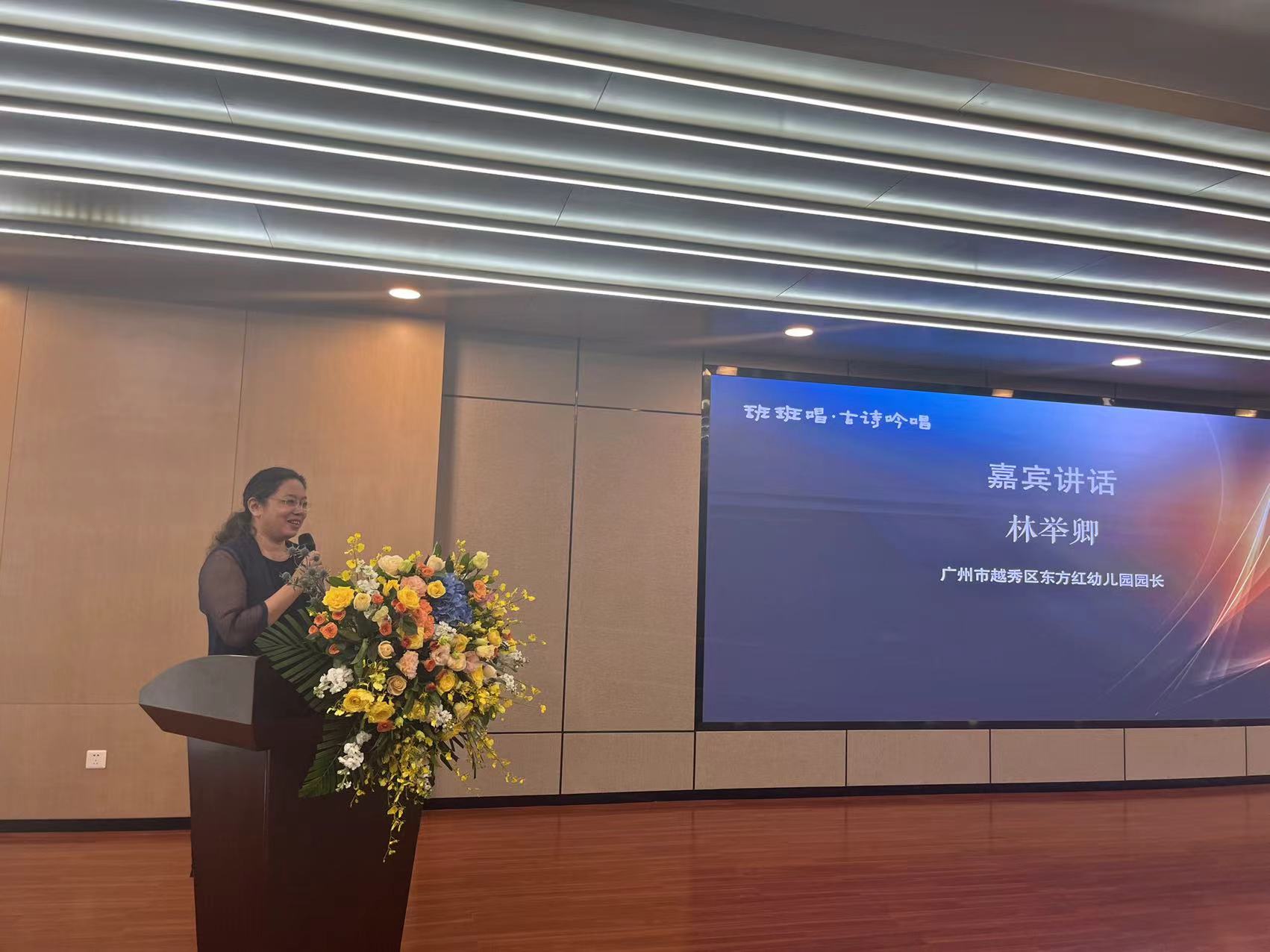 近年来,“班班唱.古诗吟唱”在广州开展得如火如荼。近日,“班班唱.古诗吟唱”绘本工作室成立挂牌仪式在广州举行。广州市越秀区东方红幼儿园园长林举卿分享了“班班唱·古诗吟唱”在广州市东方红幼儿园的教育实验活动。林举卿在发言中表示,班班唱·古诗吟唱”所倡导的新理念,让师生们重新思考,在幼教期应该让孩子们学什么、如何学?“以前我觉得这些晦涩难懂的古诗词小朋友是无法理解的,但后来我发现,我们优秀古诗词就应该让孩子们从小去接触,这种古诗吟唱的方式就非常好。”她说,这种新方式让孩子们从每天吟唱的仪式感中营造一种独特的氛围,从而培养孩子的“精气神”,一种中国人特有的“精气神”,让孩子们在日常生活中就能受到中国传统文化的滋养。