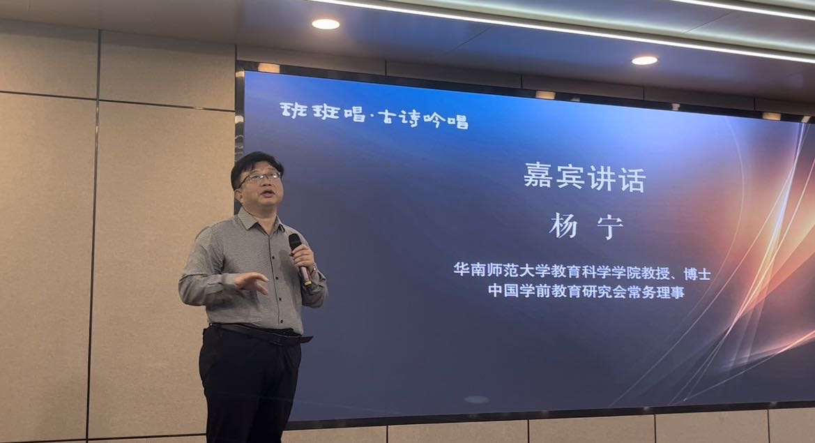 近日,“班班唱.古诗吟唱”绘本工作室成立挂牌仪式在广东人民出版社举行。华南师范大学教育科学学院教授、中国学前教育研究会常务理事杨宁在发言中表示,常言道三岁定终身,所以,传统文化的传承与创新应该从娃娃抓起,造就一代又一代的祖国建设者和接班人。徐捷老师的“班班唱·古诗吟唱”实践已取得丰硕成果,可在更大范围内推广应用,让更多孩子通过这种方式受到传统文化的浸润。