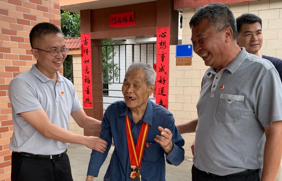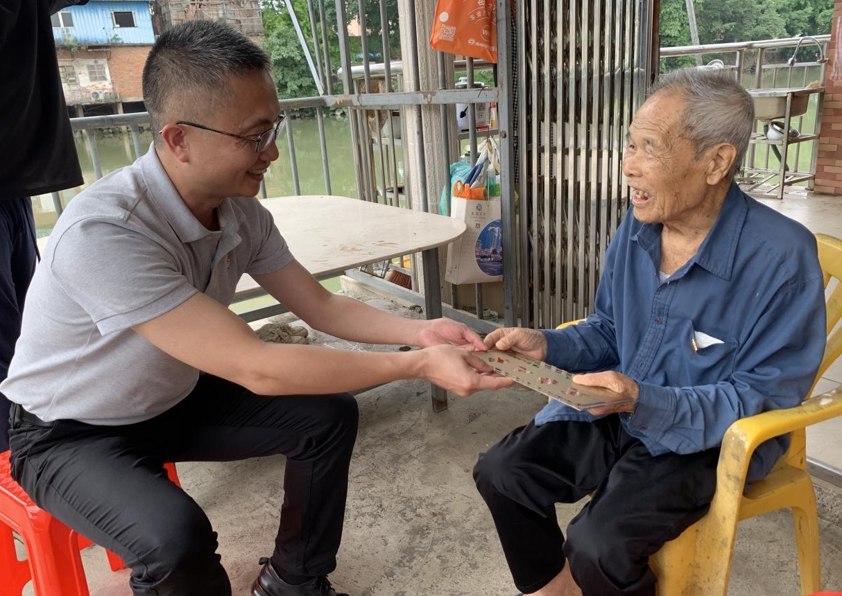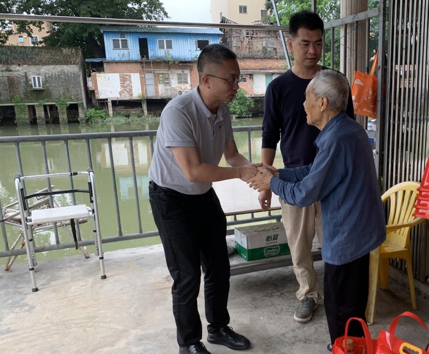 南沙区退役军人事务局联合南沙区水务局组成慰问组前往93岁退役老兵何流胜家中。通讯员供图