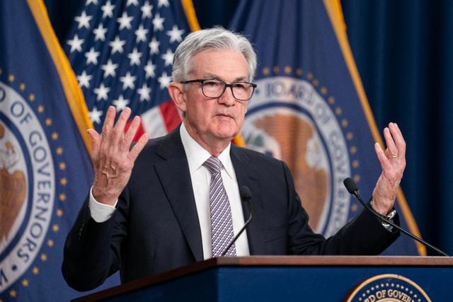 5月3日,美国联邦储备委员会主席鲍威尔在华盛顿出席新闻发布会。美国联邦储备委员会3日结束为期两天的货币政策会议,宣布再次将联邦基金利率目标区间上调25个基点到5%至5.25%之间。新华社记者刘杰摄
